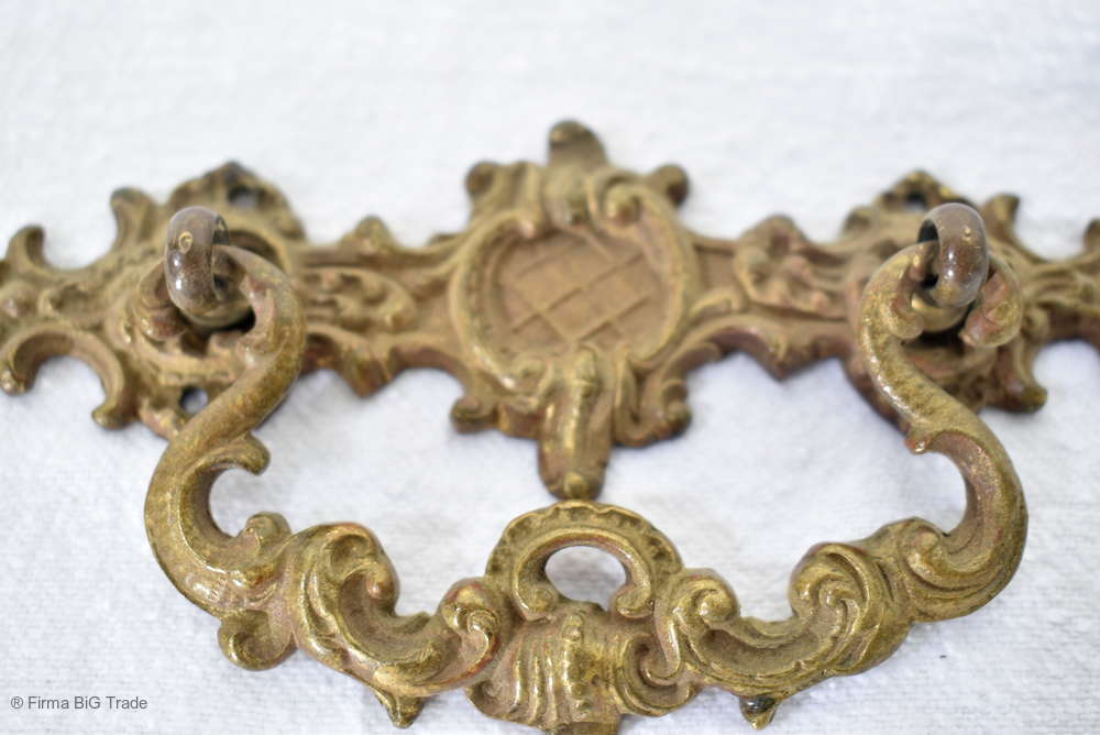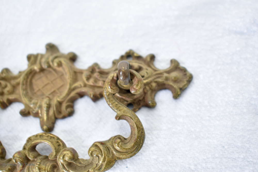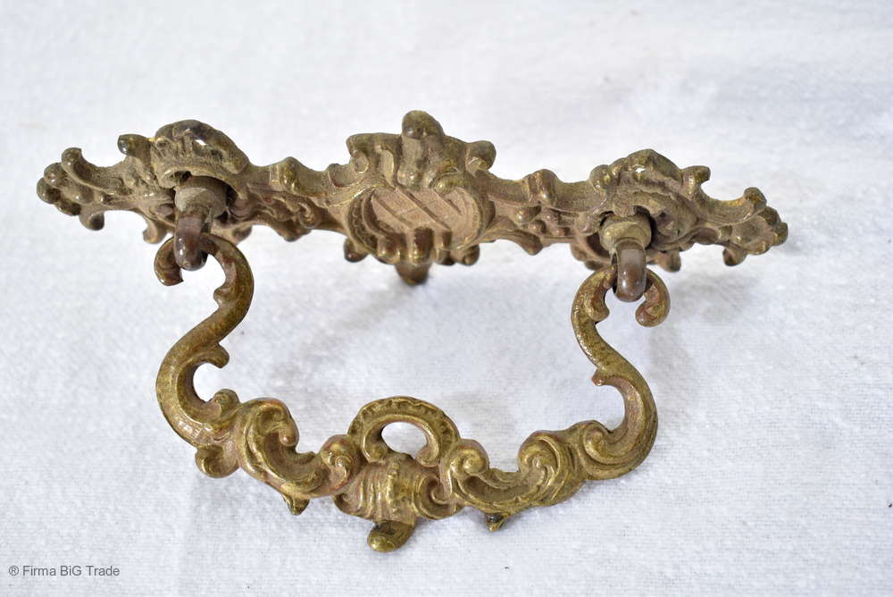 Eleganter antiker Gründerzeit Griff / Beschlag Kommodengriff Schubladengriff Metallguss Verzierungen Nr. 3