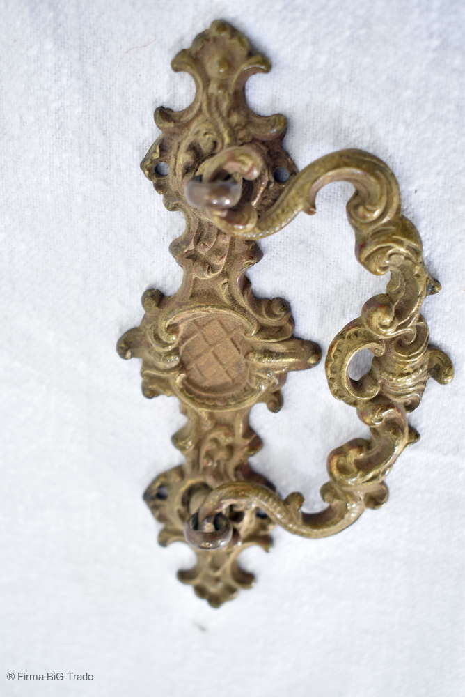 Angeboten wird ein antiker Gründerzeit Griff / Beschlag / Schubladengriff / Kommodengriff / Schrankgriff aus massivem Metallguss mit vielen detailreichen Verzierungen als Ersatz. Weitere antike Griffe und Beschläge finden Sie in unserem Shop!