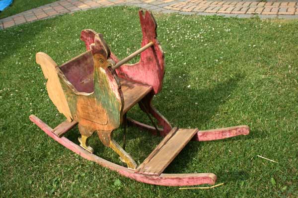 Schönes antike Kinder Schaukelstuhl / Hahn / bemalt