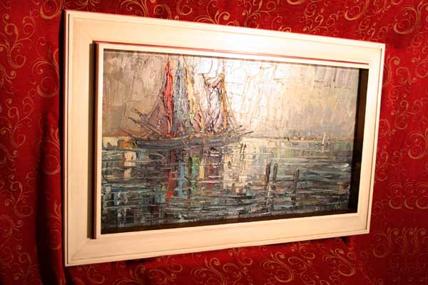 Großes Gemälde / Rossi / Segelschiffe im Sonnenuntergang