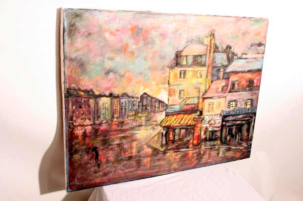 Schönes großes Gemälde / Straße im Regen / 81 x 60 cm