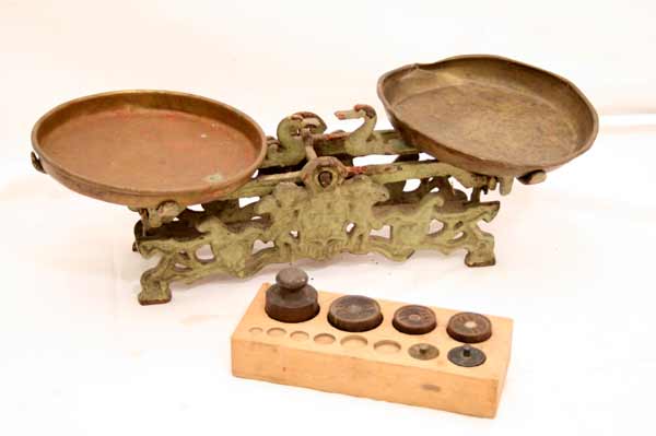 Tolle antike Ladenwaage + Gewichte / Kauflanden / Waage 02