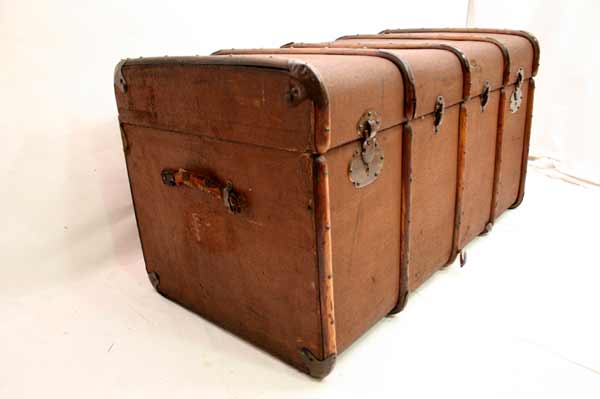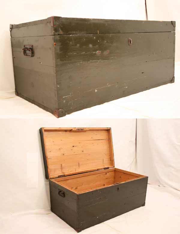 Schöne antike Flachdecketruhe / Überseetruhe / Griffe