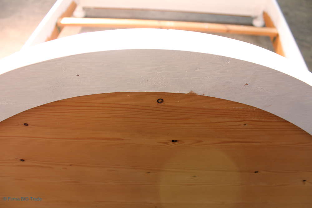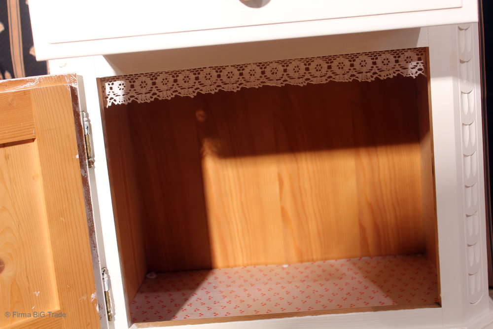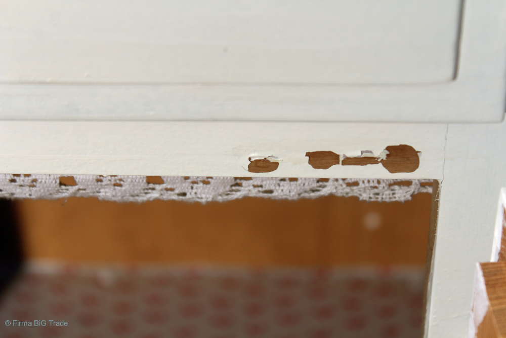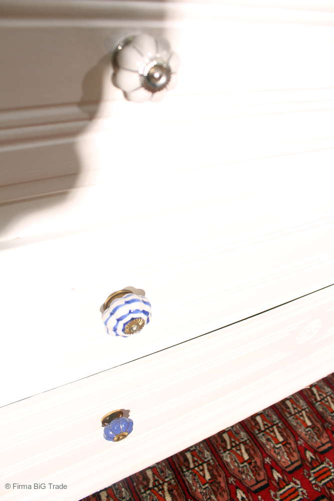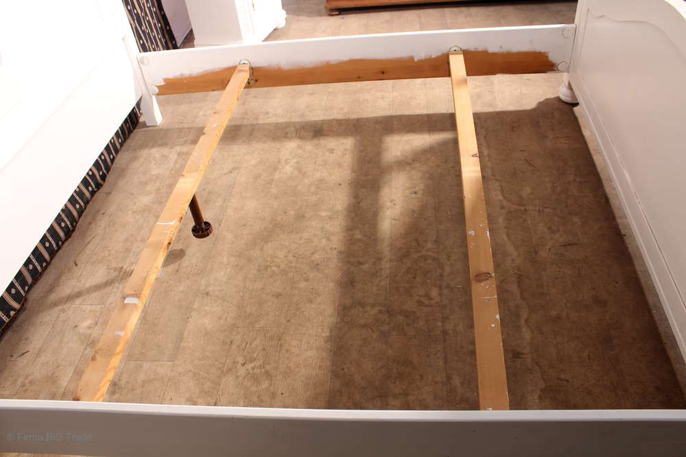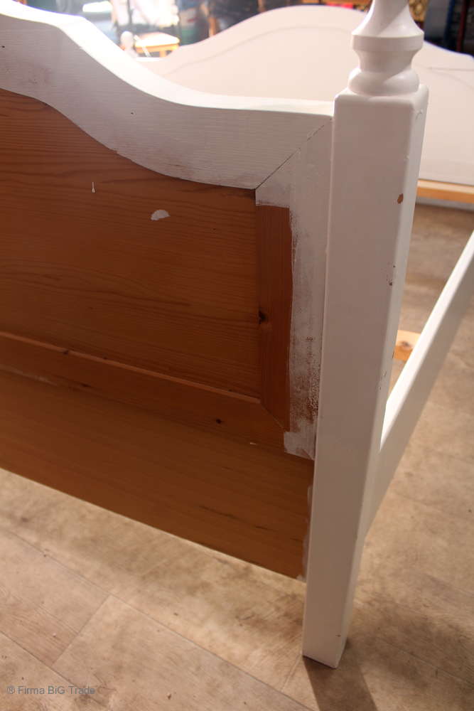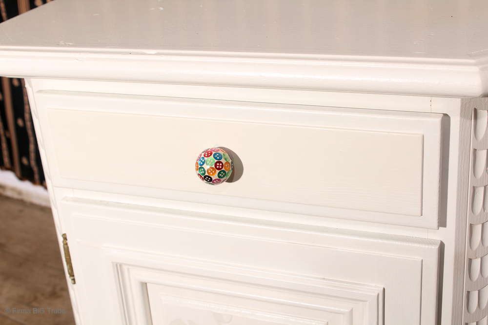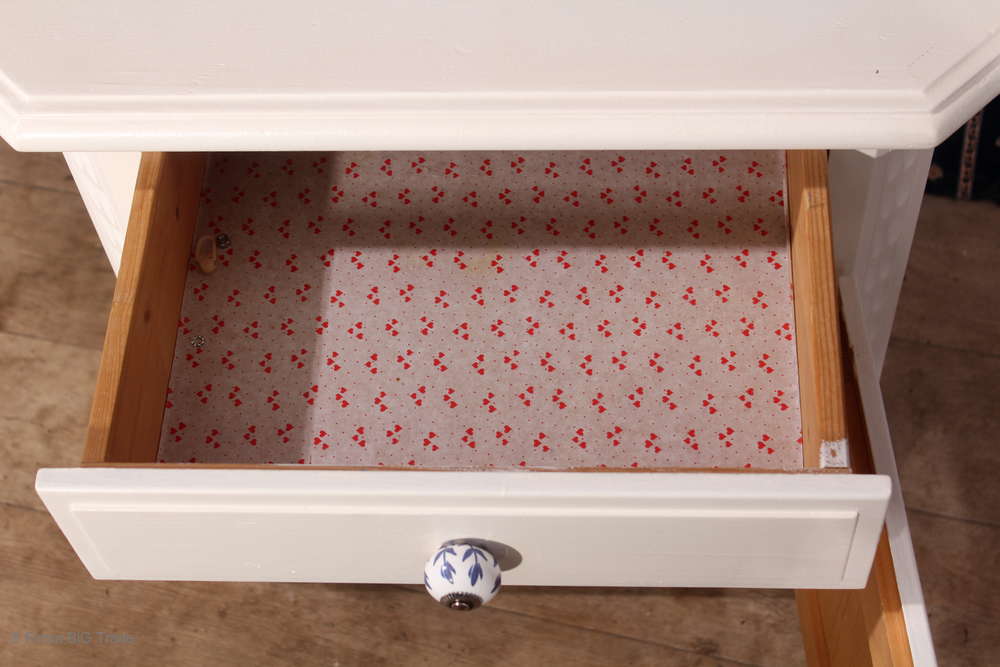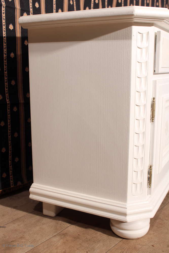 Angeboten wird ein zauberhaft schönes Landhaus Schlafzimmer bestehen aus einem prächtigen Doppelbett / Ehebett (King Size), 2 Lattenrosten, einer Wäschekommode mit 3 geräumigen Schubladen, 2 Nachtschränken und einer antiken Biedermeier Truhe aus massivem Holz. Das Herrschaftliche Doppelbett besitzt Kopf- und Fußteile, das an allen vier Ecken mit Kugelpfosten sowie Schnitzereien verziert ist. Die Kommode besitzt 3 leichtläufige Schubladen und 2 praktische Nachtschränke mit jeweils eine Schublade und einem abschließbaren Schrankfach. Alle Möbel bis auf die Biedermeier Truhe sind gleich dezent geschnitzt und elegant gestaltet und vom Vorbesitzer in Weiß Shabby Chic gestrichen. Die Möbel weisen Alters- und Gebrauchsspuren u.a. Risse am Fußteil des Bettes und der Truhe, Kratzer, Flecken und Abriebstellen (alles siehe Bilder), die schönen ausgefallenen Landhausmöbel befinden sich ansonsten in einem guten gebrauchten Zustand.