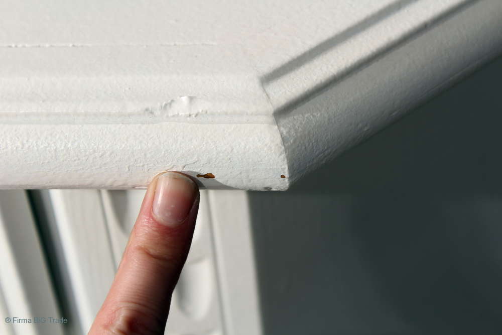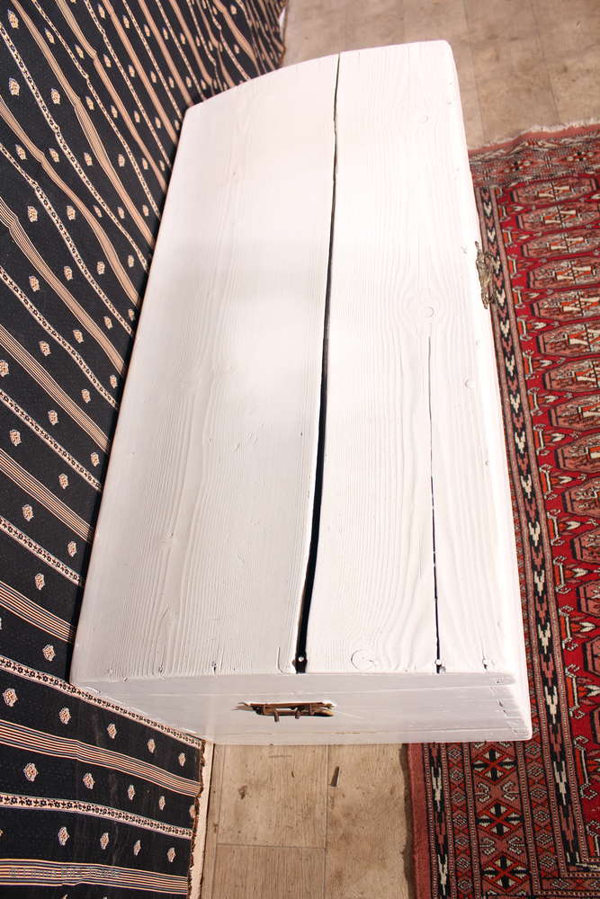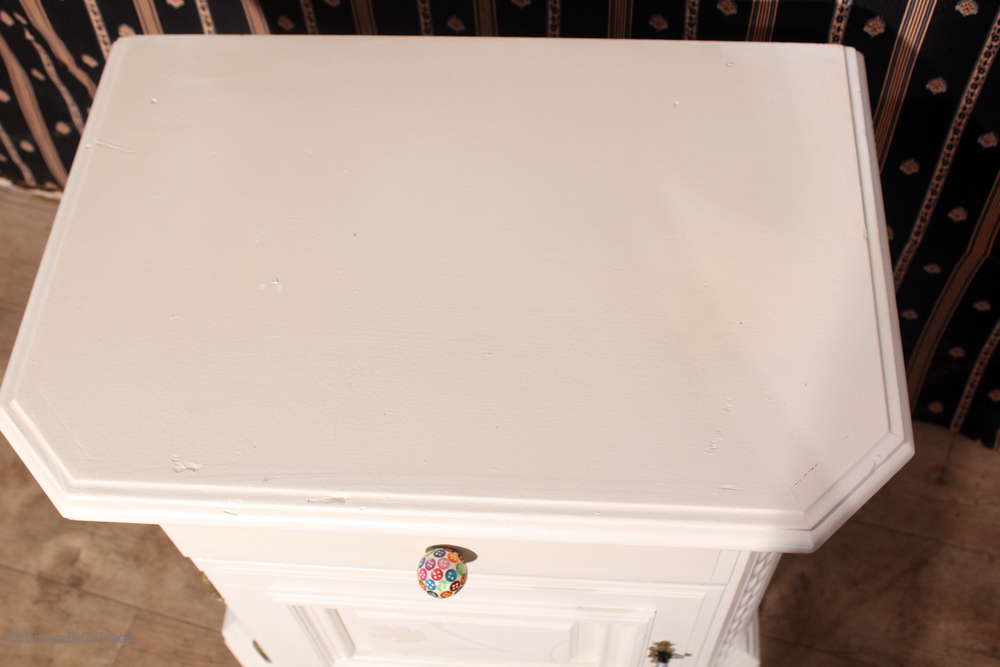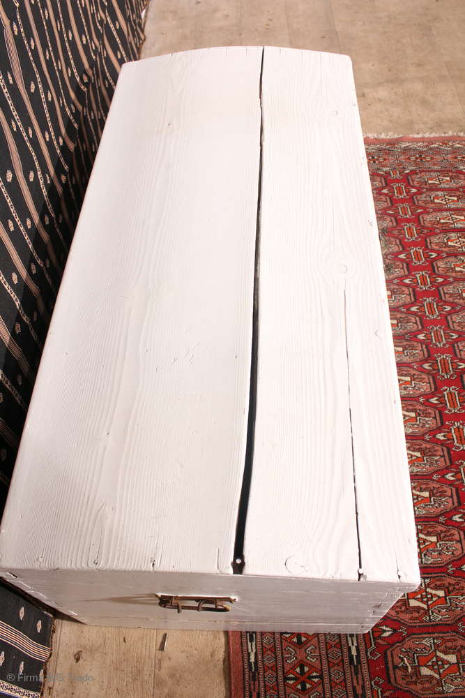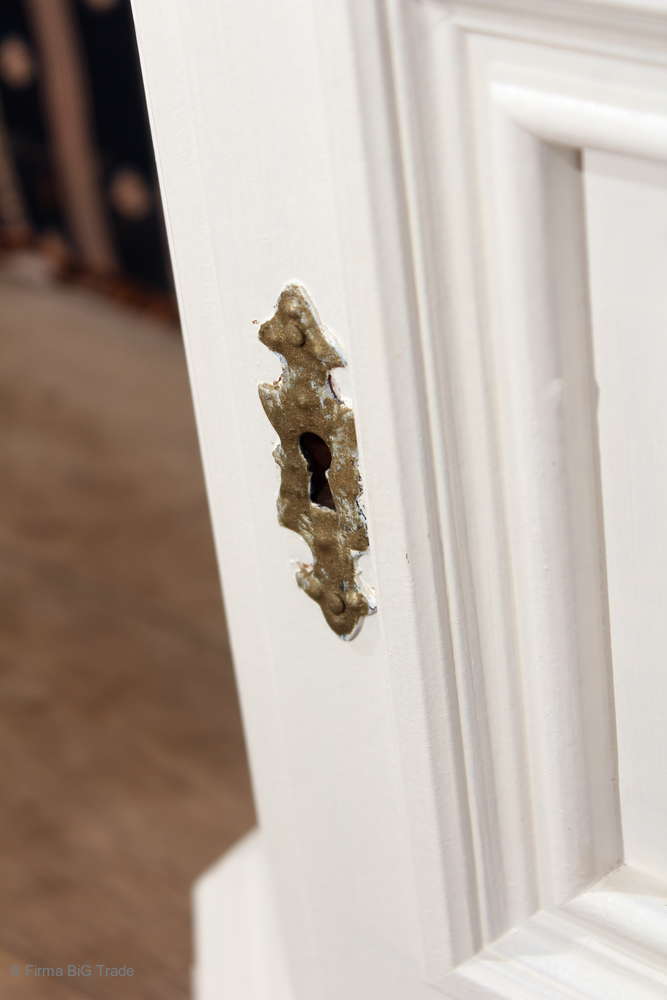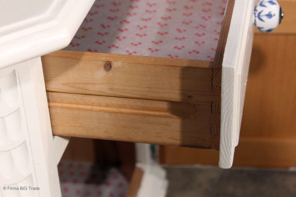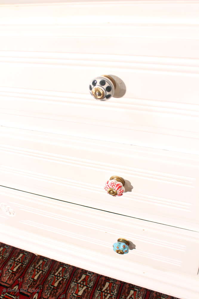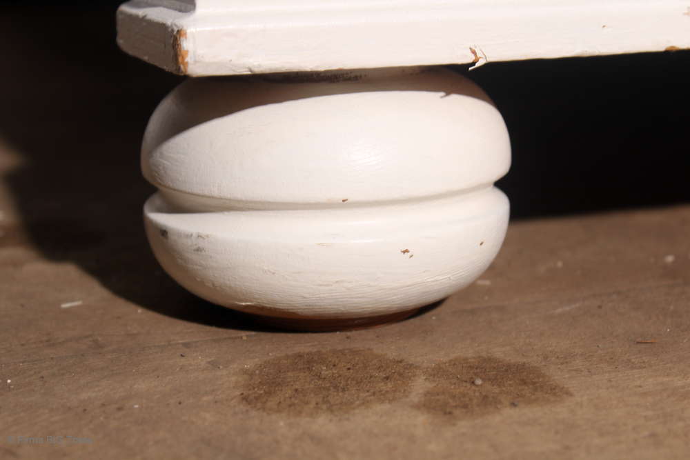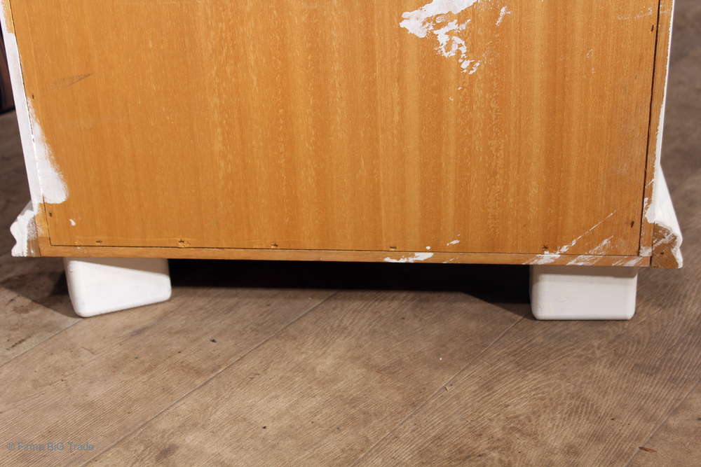 Angeboten wird ein zauberhaft schönes Landhaus Schlafzimmer bestehen aus einem prächtigen Doppelbett / Ehebett (King Size), 2 Lattenrosten, einer Wäschekommode mit 3 geräumigen Schubladen, 2 Nachtschränken und einer antiken Biedermeier Truhe aus massivem Holz. Das Herrschaftliche Doppelbett besitzt Kopf- und Fußteile, das an allen vier Ecken mit Kugelpfosten sowie Schnitzereien verziert ist. Die Kommode besitzt 3 leichtläufige Schubladen und 2 praktische Nachtschränke mit jeweils eine Schublade und einem abschließbaren Schrankfach. Alle Möbel bis auf die Biedermeier Truhe sind gleich dezent geschnitzt und elegant gestaltet und vom Vorbesitzer in Weiß Shabby Chic gestrichen. Die Möbel weisen Alters- und Gebrauchsspuren u.a. Risse am Fußteil des Bettes und der Truhe, Kratzer, Flecken und Abriebstellen (alles siehe Bilder), die schönen ausgefallenen Landhausmöbel befinden sich ansonsten in einem guten gebrauchten Zustand.