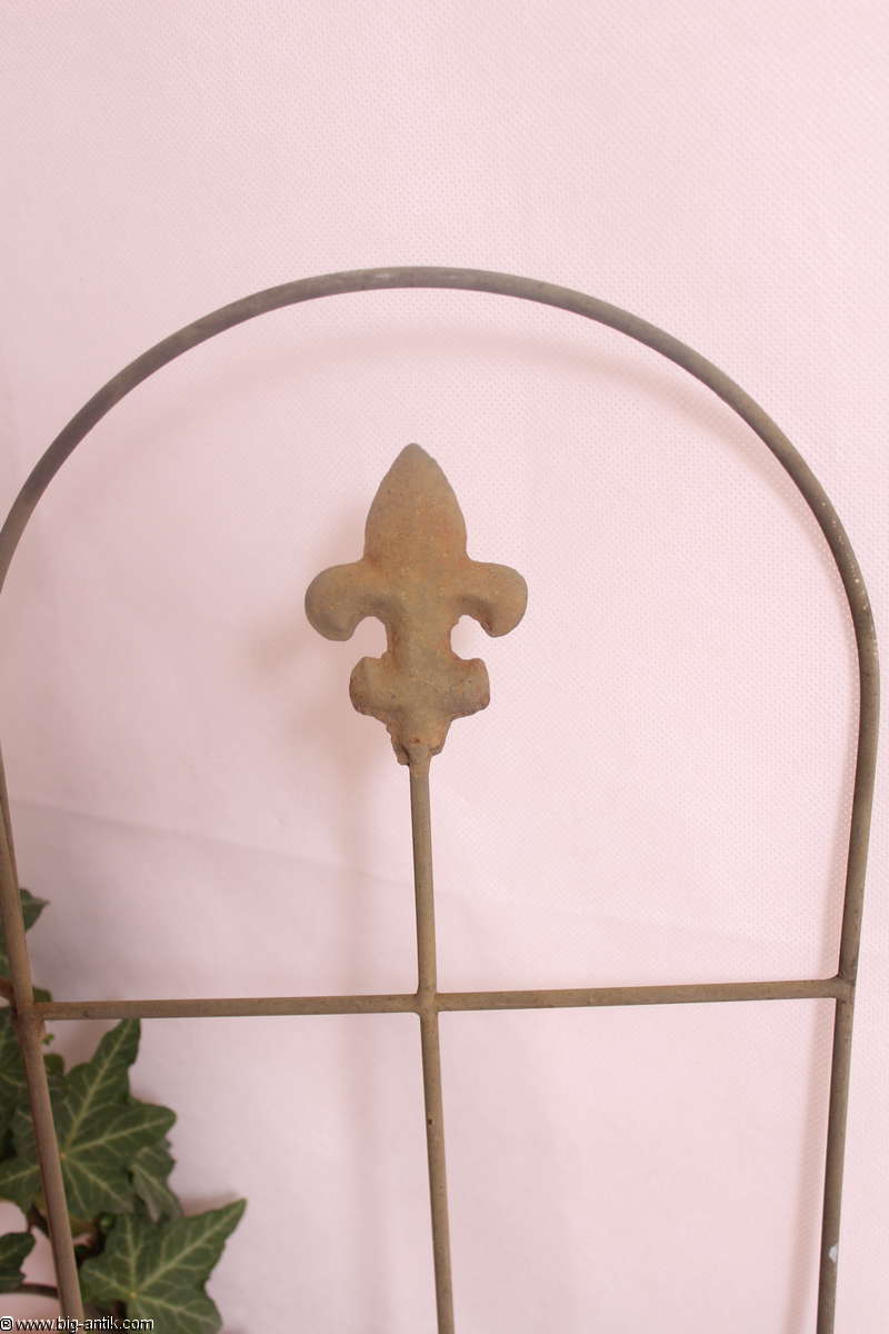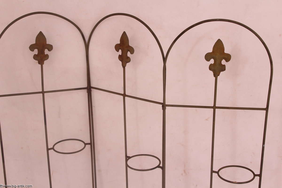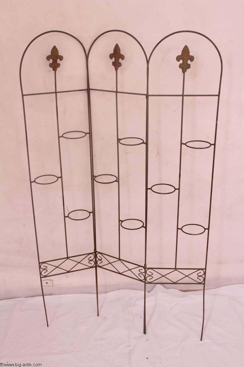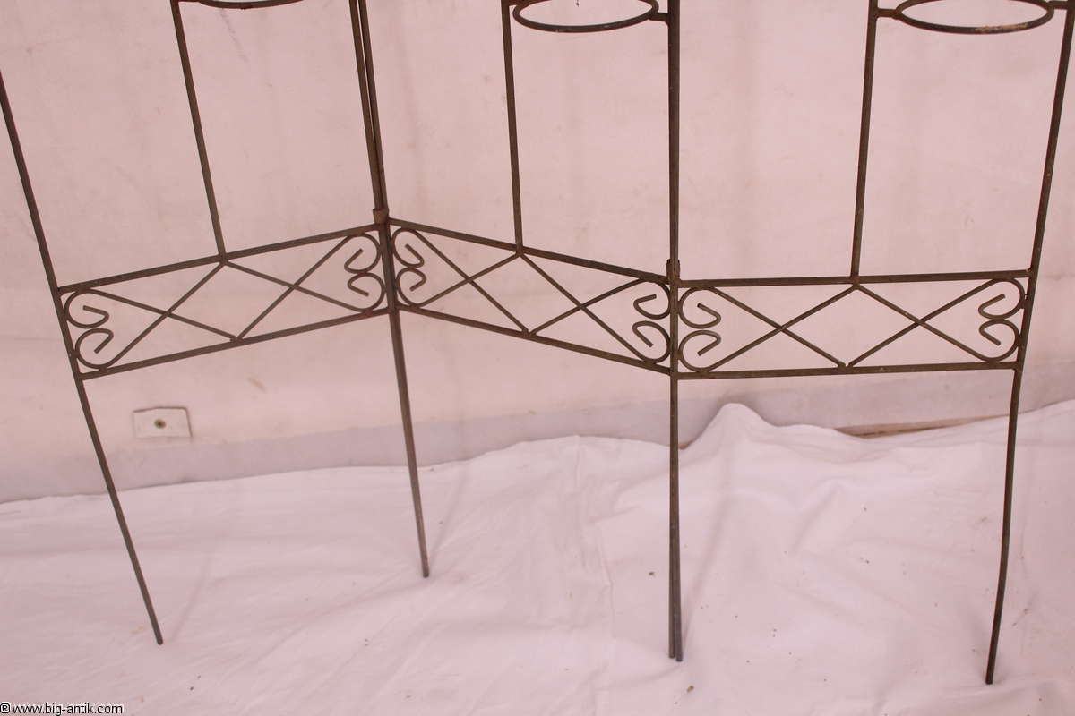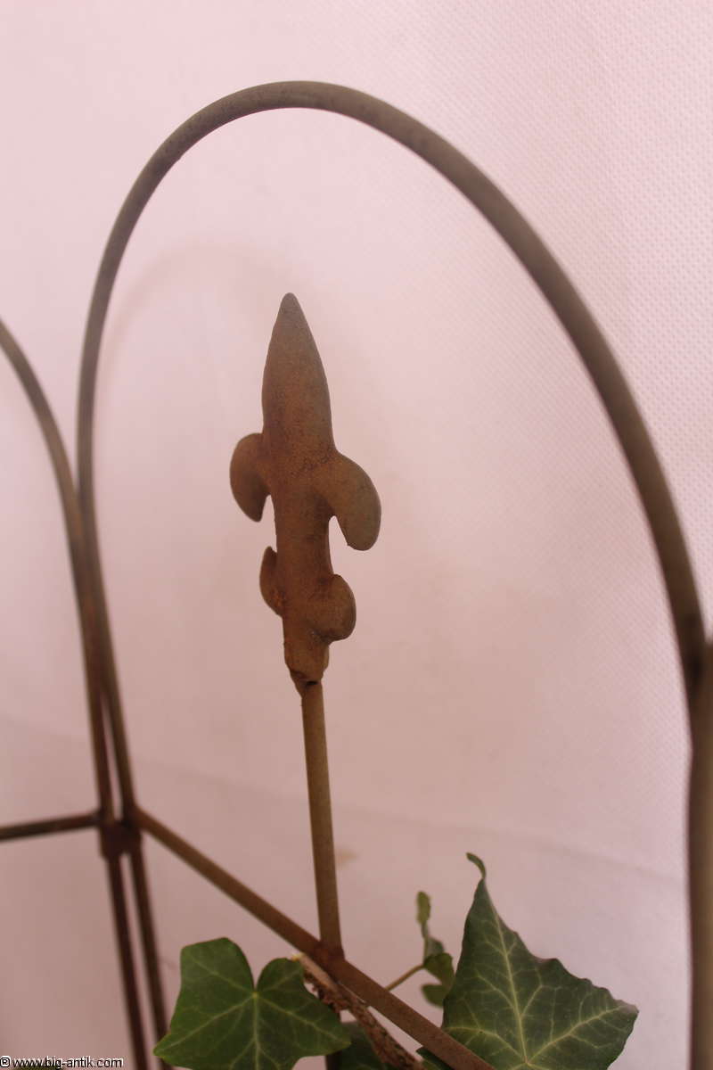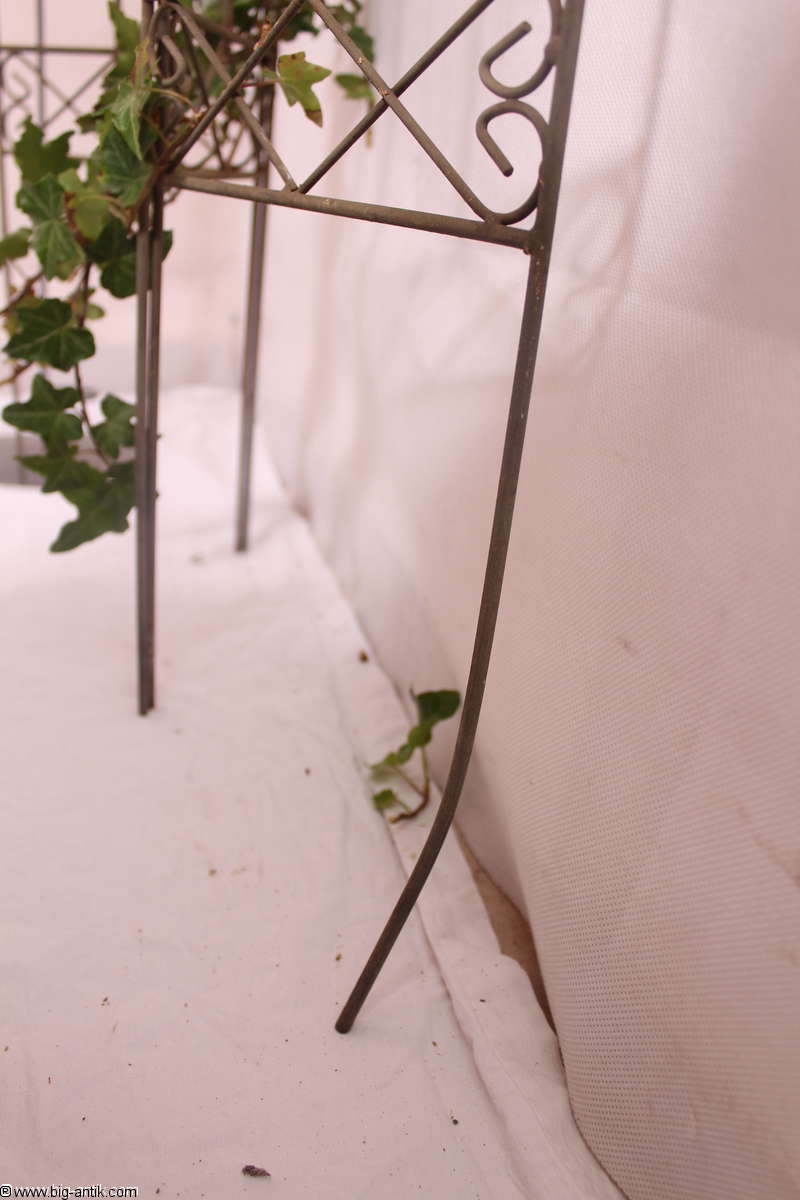 Angeboten wird ein wunderschönes Blumengitter / Pflanzengitter / Rankengitter / Gartendekoration / Gitter aus Metall. Das dreiteilig gestaltete Pflanzengitter ist zusammenklappbar und besitzt 9 Öffnungen zum Einsatz für Pflanztöpfe. Das formschöne Blumengitter weist einige Gebrauchsspuren auf u.a. Kratzer, Farbe verblast bzw. Rost, eine Seitenstange unten verbogen (siehe Bilder). Das Rankengitter eignet sich als zur Gartendekoration.