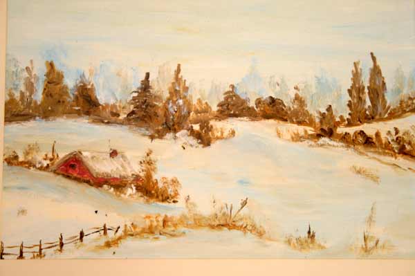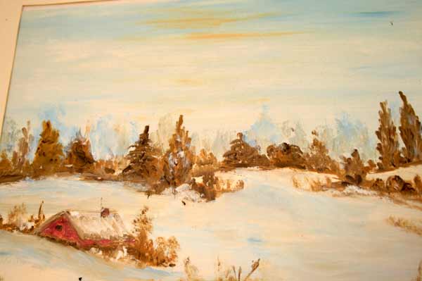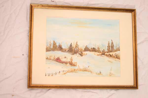 Angeboten wird ein sehr schönes Bild in einem edlen Holzrahmen im goldener Patina. Das schöne Bild stellt eine verschlafene Winterlandschaft dar.