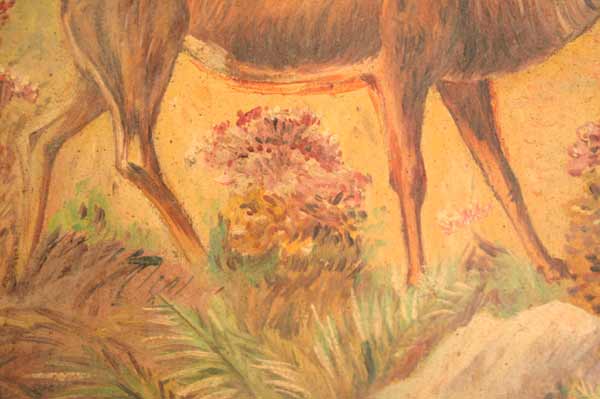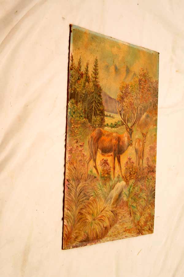 Angeboten wird ein altes Gemälde aus dem Jahre 1955, das eine Waldlandschaft mit einem Hirsch und Reh darstellt. Das schöne Gemälde auf Holz ist mit "Ignaz Walter" signiert. Passenden Rahmen finden Sie in unserem Shop!