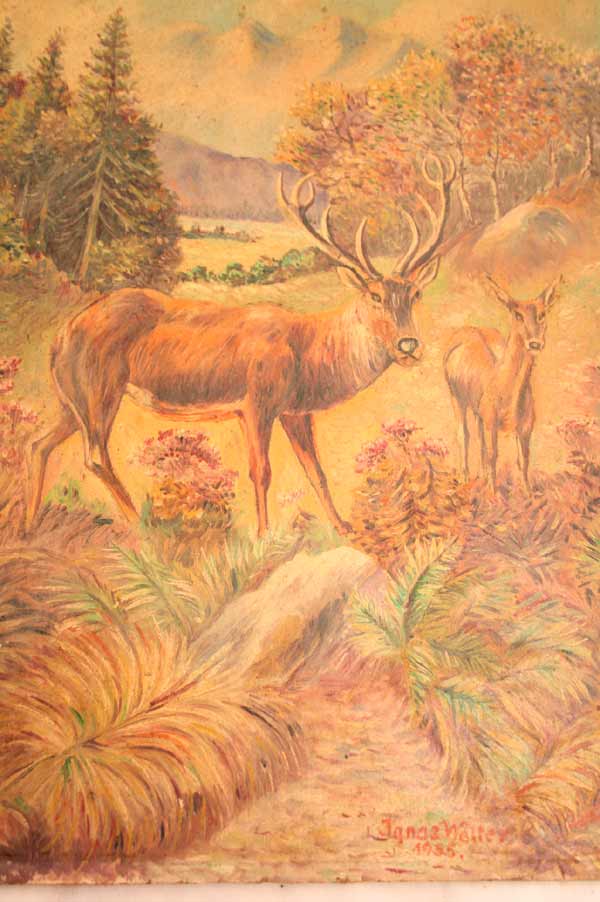 Gemälde / "Ignaz Walter" 1955 / Hirsch / Wald / Jagd