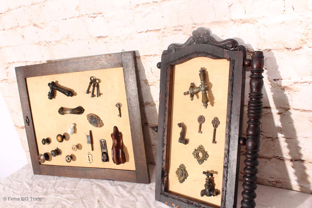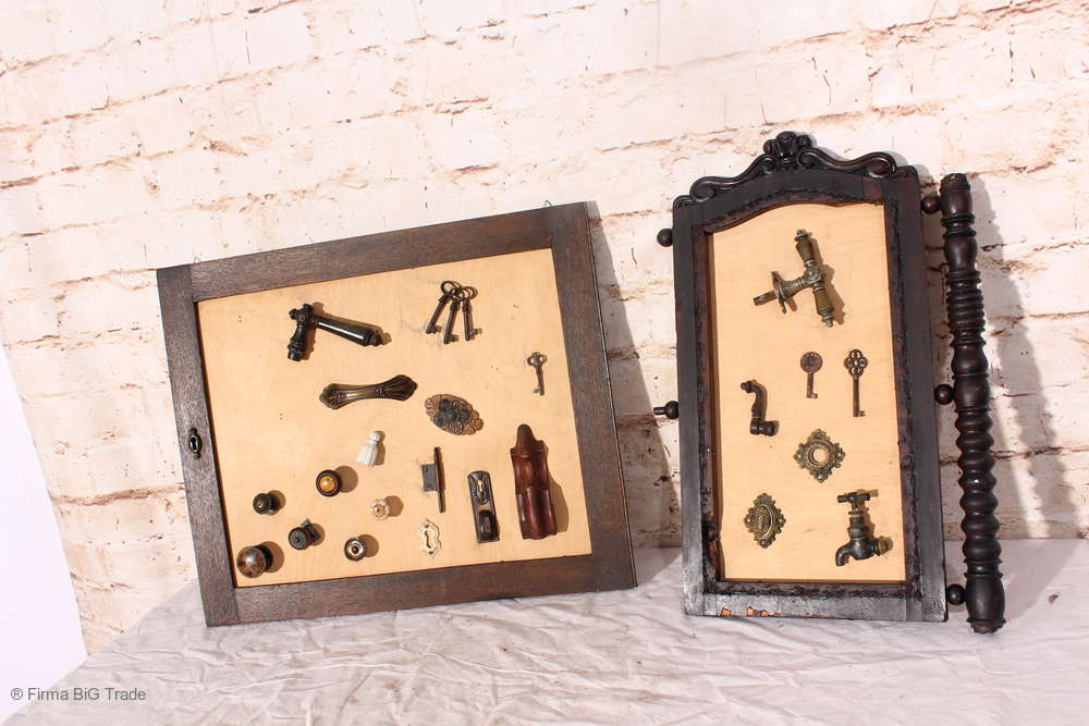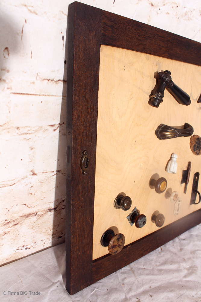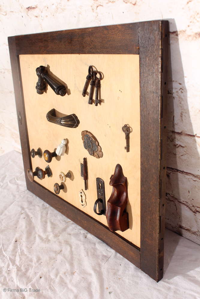 Einzigartige Wanddekoration! Antiker Holzrahmen mit antiken Griffen, Schlüsseln Schrankknöpfen eingerahmt