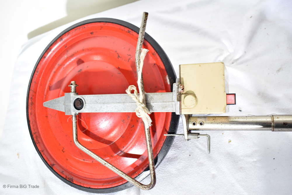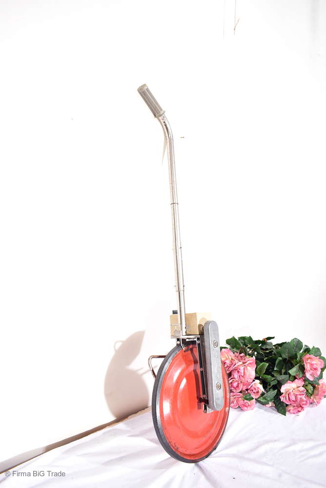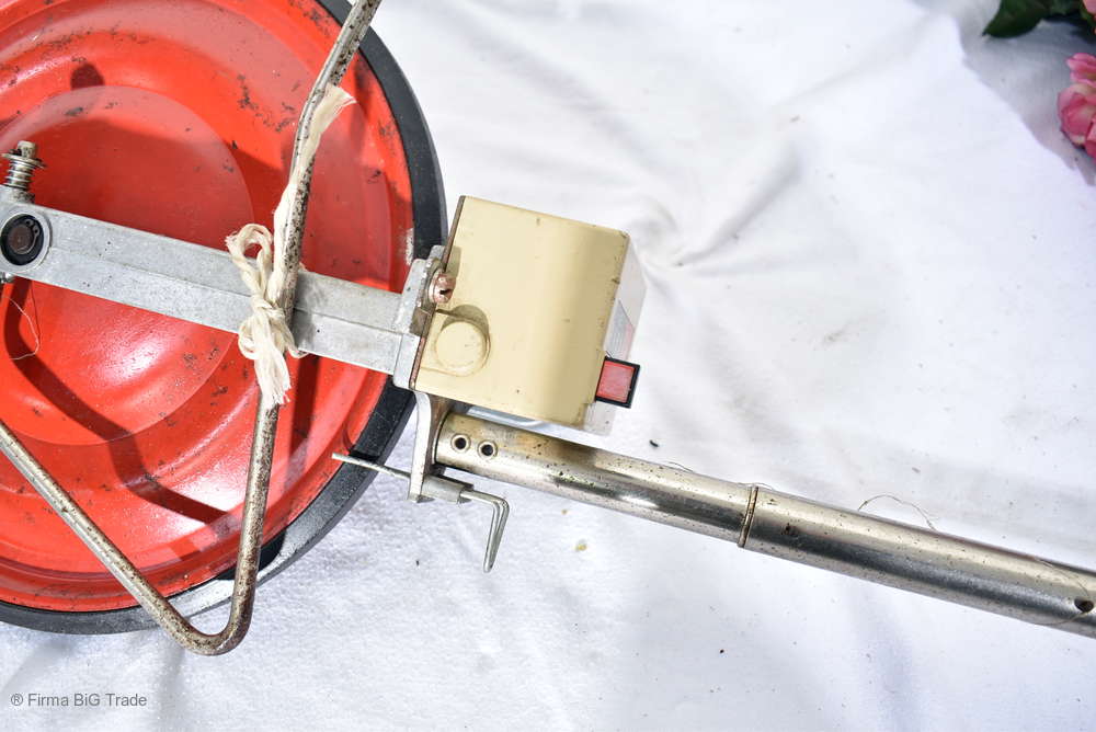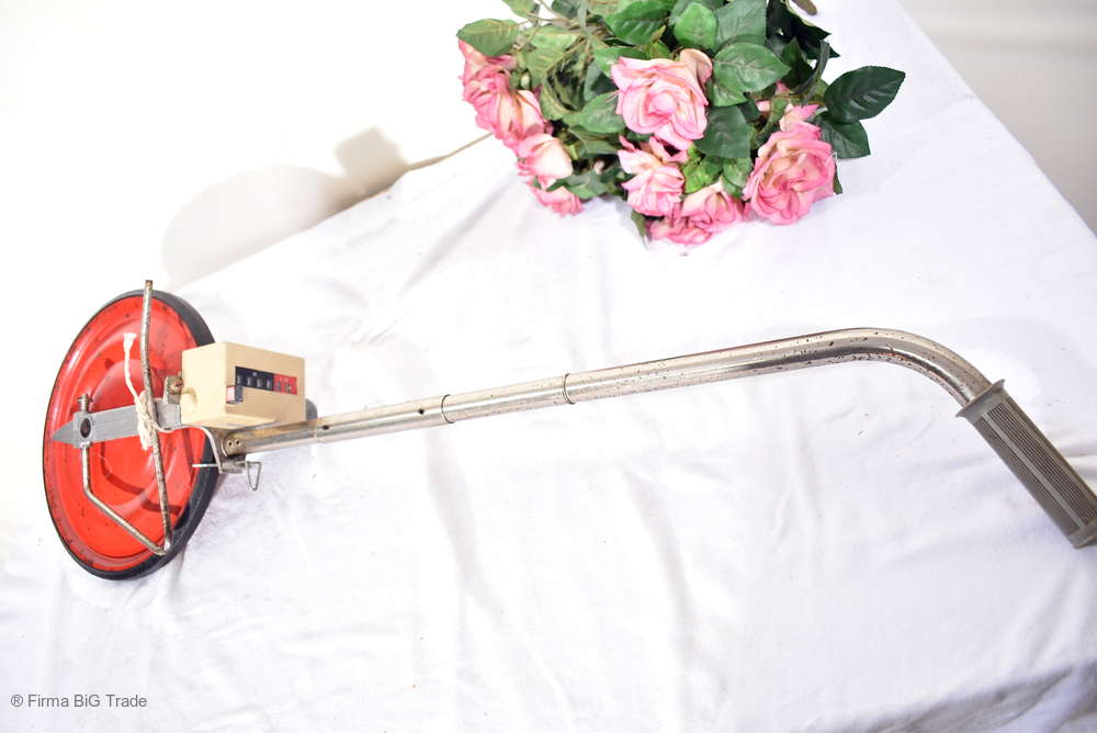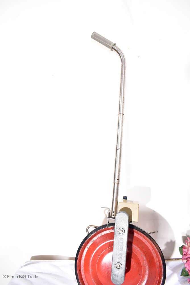Angeboten wird ein altes Messgerät / Messrad / Streckenmesser / Wegmesser von der Firma GEOTEC Marke M10 (Made in W. Germany). Der Streckenmesser hat eine lange Führungsstange mit Griff mit einem rot lackierten Blechrad mit Gummiumreifung. An der Seite ein Tachometer mit einer Taste. Das alte Messgerät ist gebraucht (siehe Bilder) und wurde nicht auf Funktionalität und Vollständigkeit überprüft.