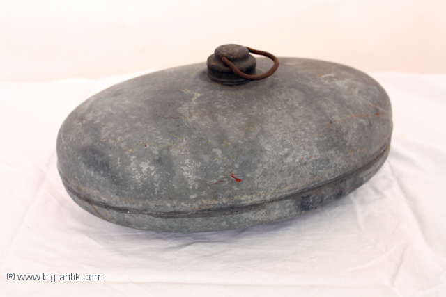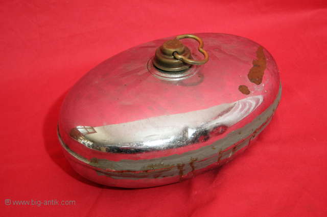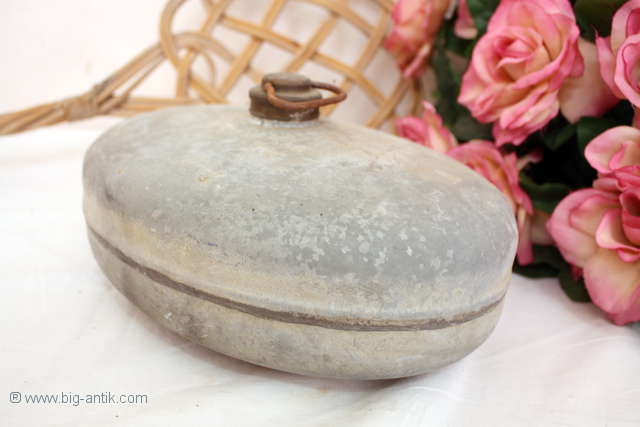 Angeboten wird ein Posten alte, antike ovale Wärmflaschen aus Metall. Die Wärmeflaschen sind ist schön geformt und hat einen aufschraubbaren Deckel. Sie weisen Alters- und Gebrauchsspuren auf u.a. Flecken, Rost (siehe Bilder). Die antiken Wärmflasche wurden auf Dichtigkeit nicht geprüft und werden als Sammlerstücke angeboten