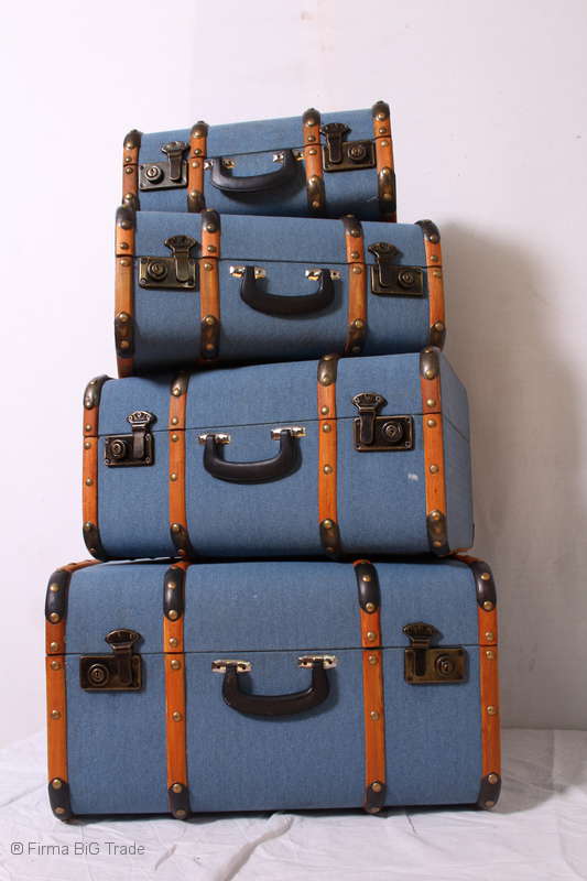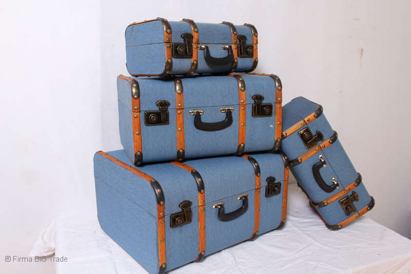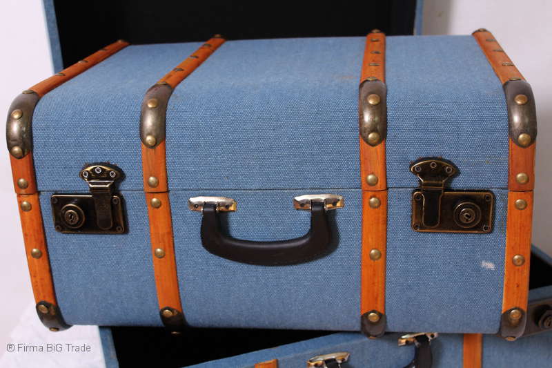 Vintage Koffer Oldtimerkoffer Kutscherkoffer Blau Holzleisten / 4 Größen / XL / Antique Style Wooden Suitcases