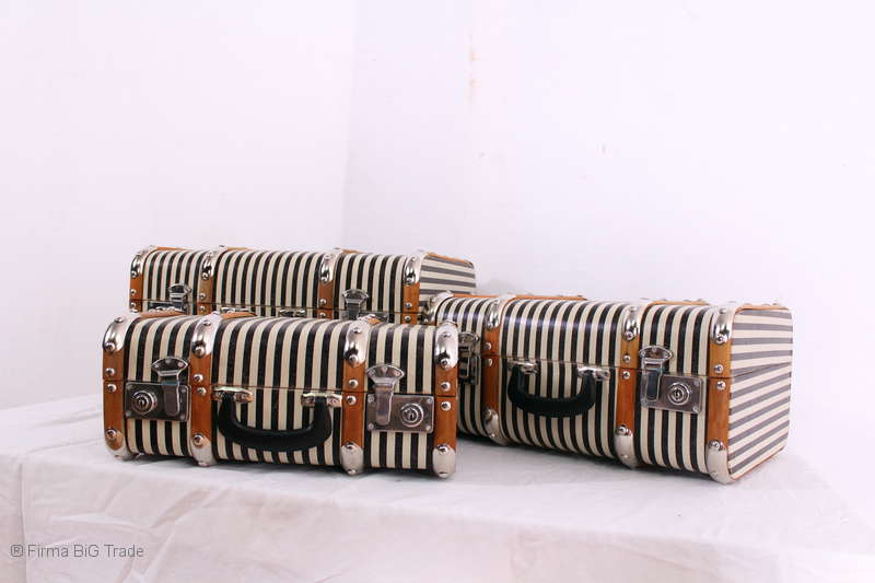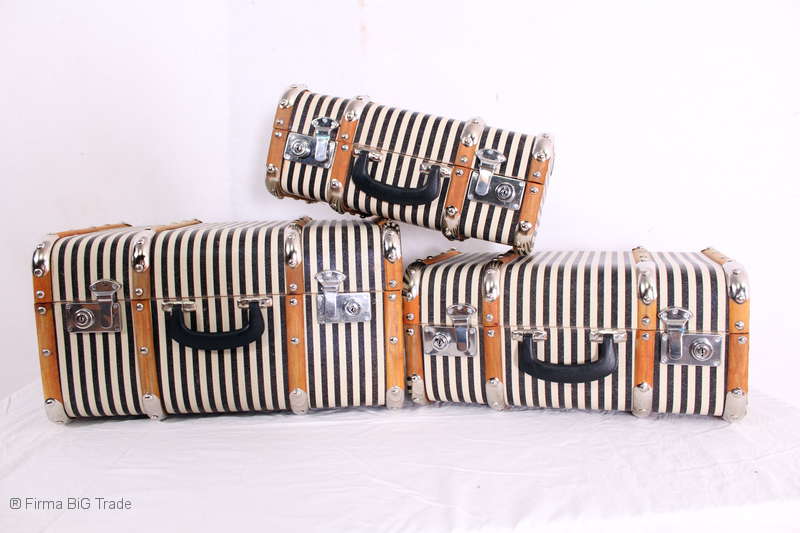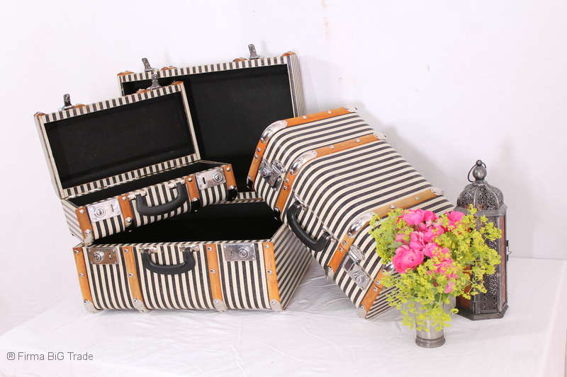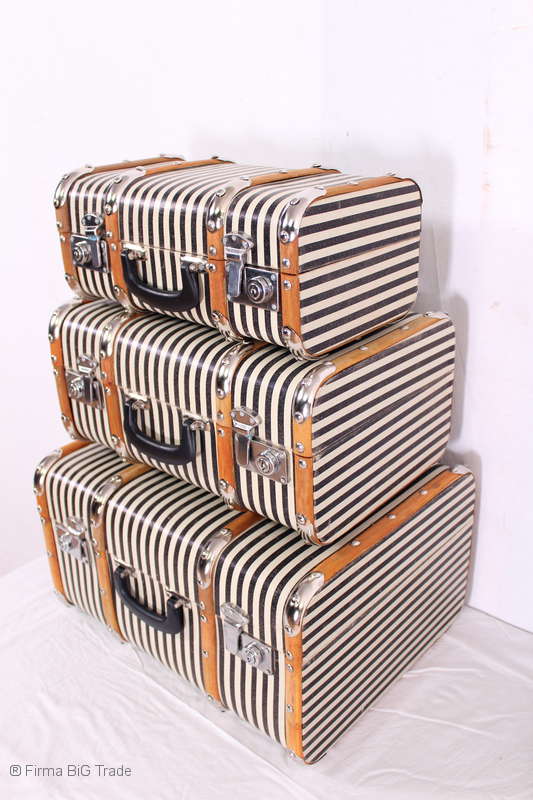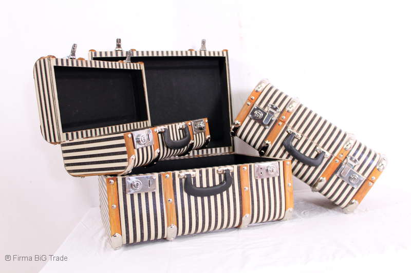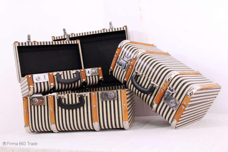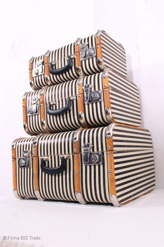 VINTAGE! Set 3 Oldtimerkoffer / Koffer / Streifenmuster / Holzlatten / Eisenbeschläge / Antik Stil
