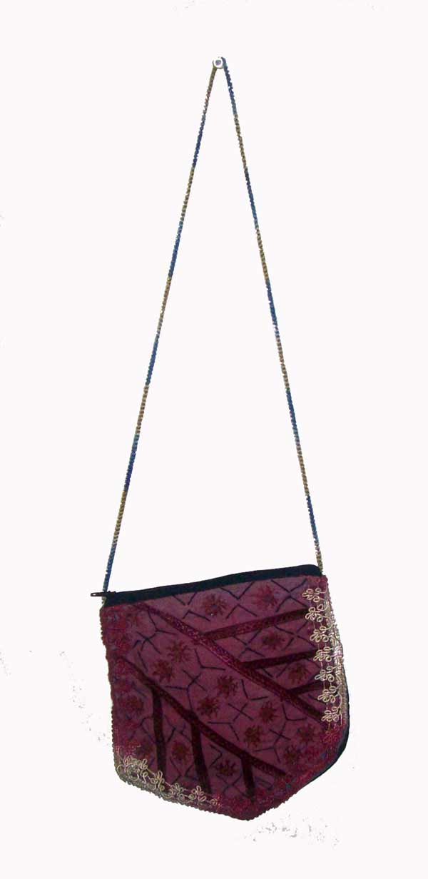 We offer a beautiful girl's purse with long shoulder strap. The beautiful bag is handcrafted and decorated with embroidery. It has a significant zip. The bag is used but is in good condition.