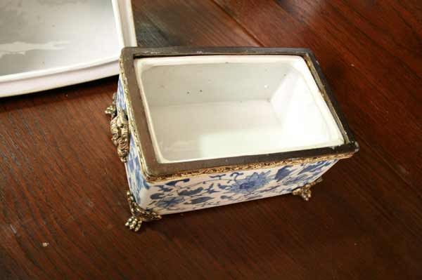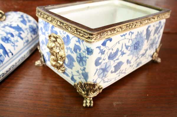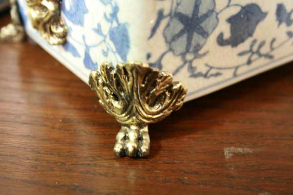 Elegante Porzellan Schatulle / Zuckerdose / Königsblau / Verzierungen /Löwenfüße