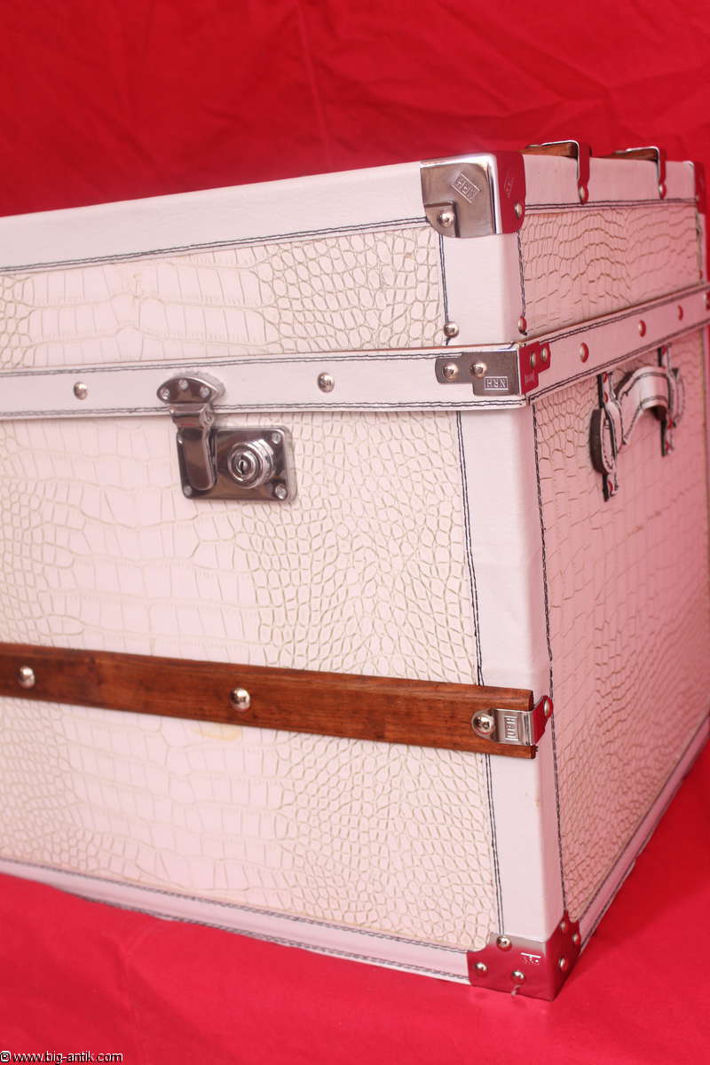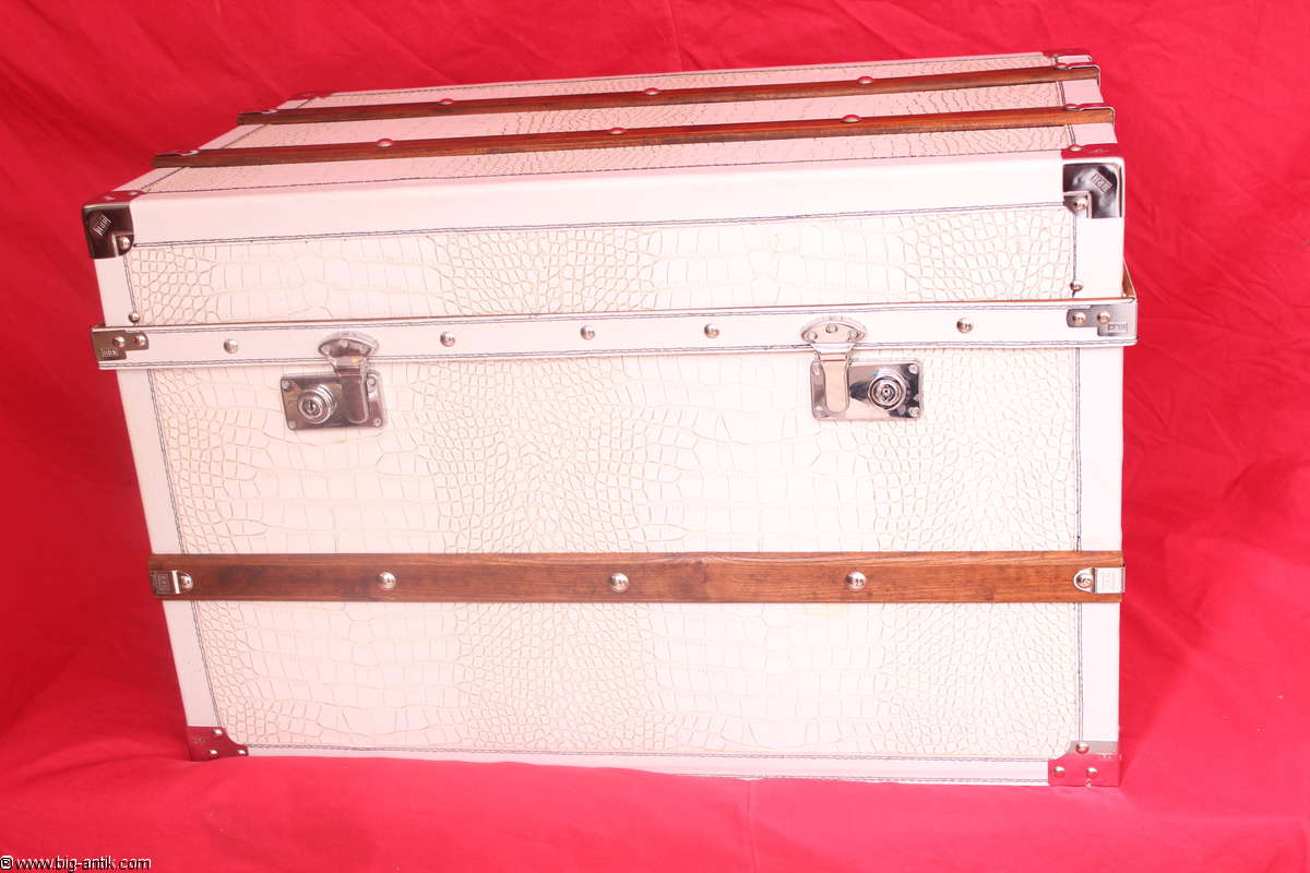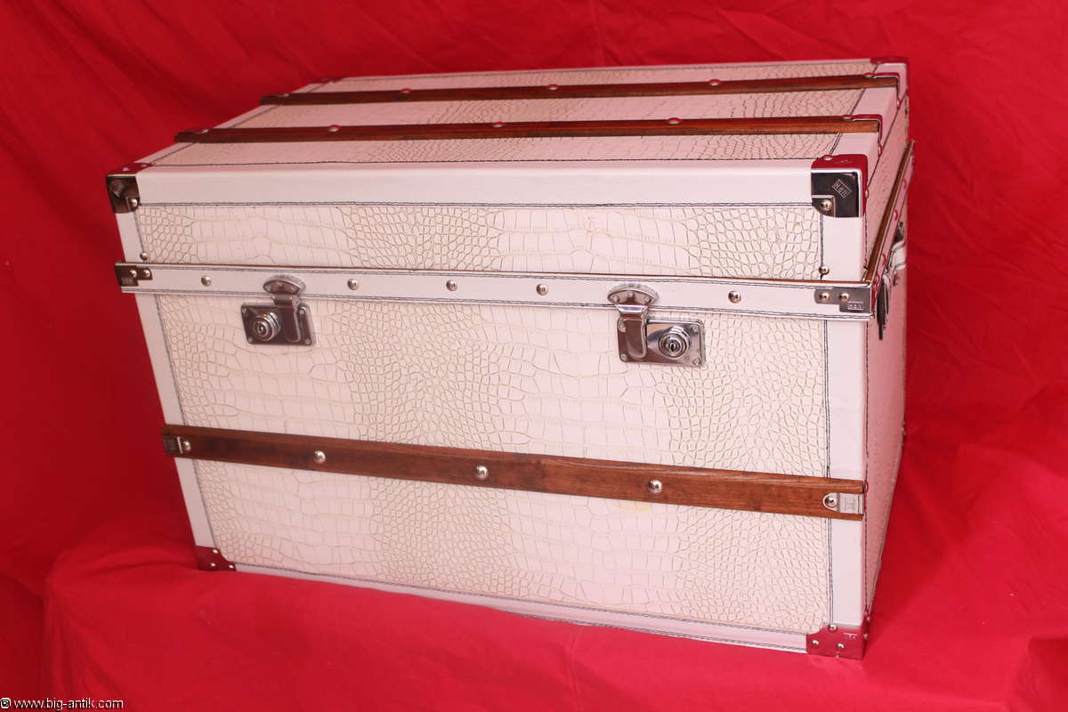 VINTAGE Große Überseekoffer Truhe Transportkiste KROKO Muster Griffe u. Beschläge L
