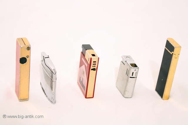 Abgeboten werden 5 schöne alte Feuerzeuge z.T. mit Werbung. Die nostalgischen Feuerzeuge funktionieren nicht werden als Sammlerobjekte angeboten. Zustand siehe Bilder.