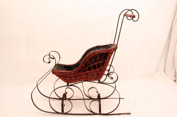 Angeboten wird ein wunderschöner nostalgischer Puppenschlitten / Puppenwagen aus Korbgeflecht und einem Gestell aus Schmiedeeisen. Das Gestell ist sehr schön und elegant verarbeitet. Der hölzerne Griff ist sehr schön gedrechselt. Am Korb und Gestell sind hier und da kleine Gebrauchsspuren vorhanden (siehe Bilder).