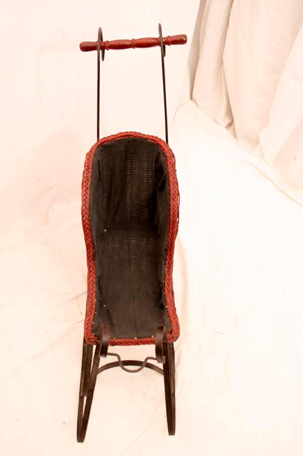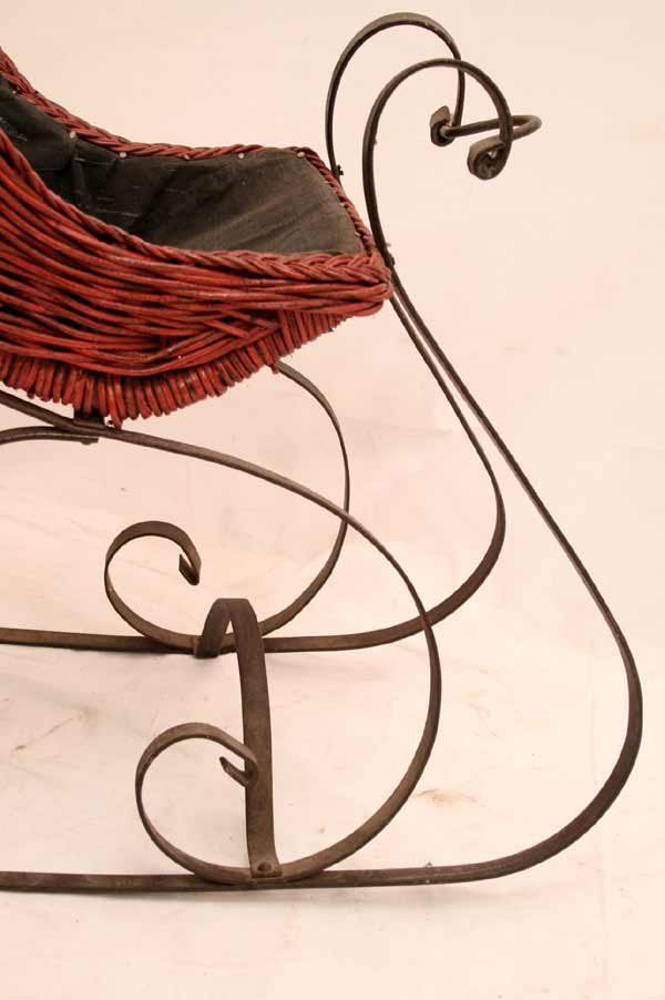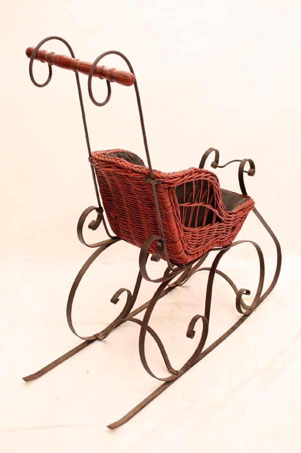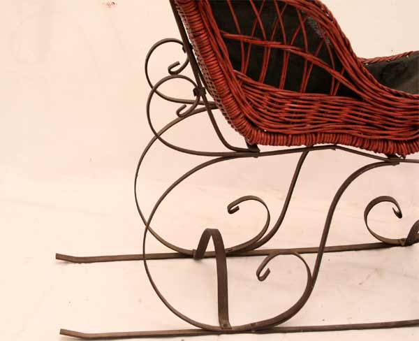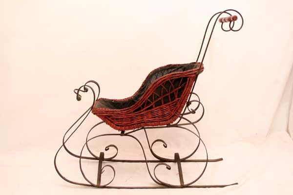 Zauberhafter Puppenschlitten / Weihnachtschlitten / Puppenwagen / Eisenkufen Korbgeflecht Schlitten Nr. 22