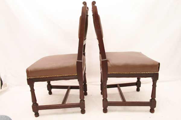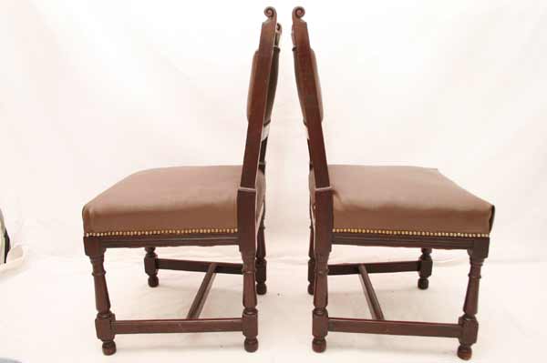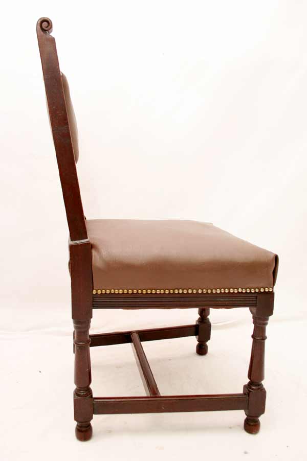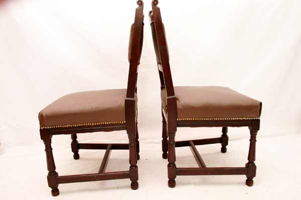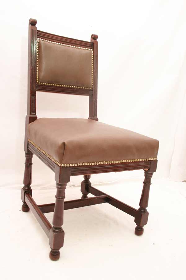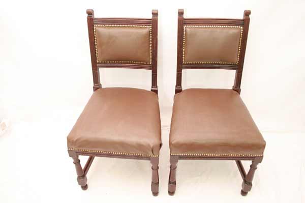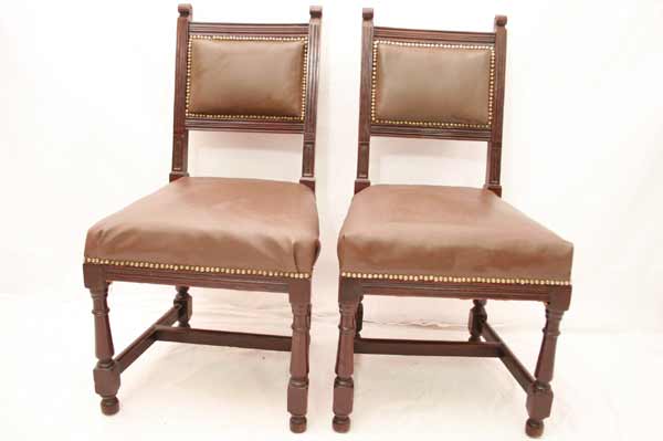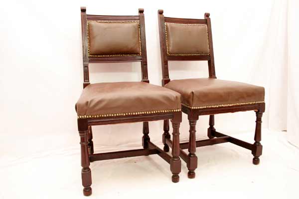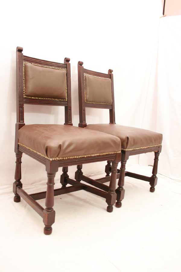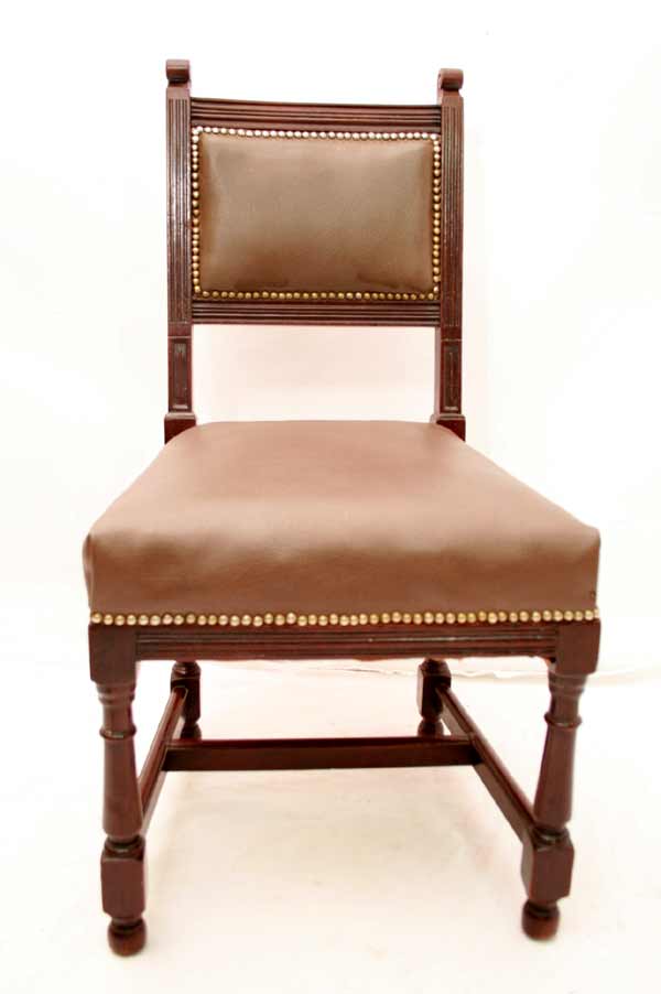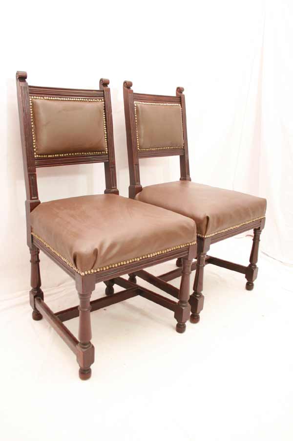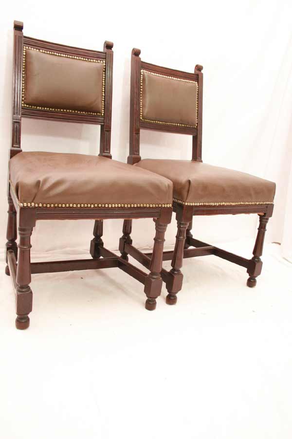 Angeboten werden 3 wunderschöne Jugendstil Stühle aus Mahagoni Holz. Die Beine sind sehr schön gedrechselt und mittels Holzverstrebungen miteinander verbunden. Die Rückenlehnen sind sehr schön und dezent geschnitzt. Die Sitzfläche und Rückenlehnen sind wohl nachträglich mit Leder bezogen. Die Bezüge sind noch gut intakt. Die schönen und schweren Jugendstil Stühle befinden sich in einem guten Zustand.