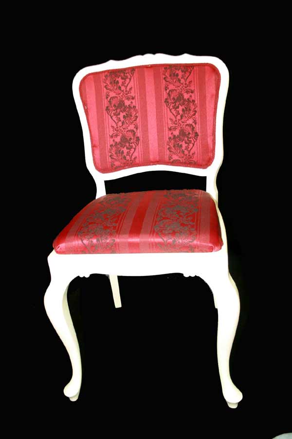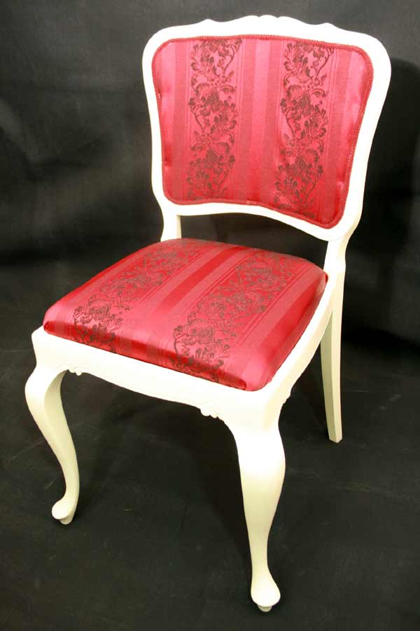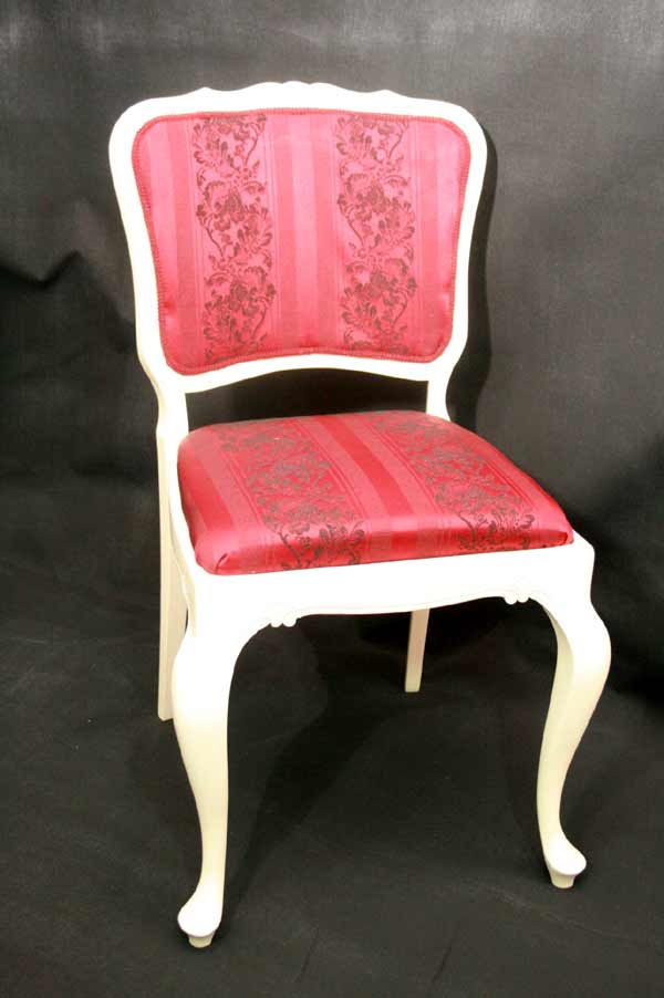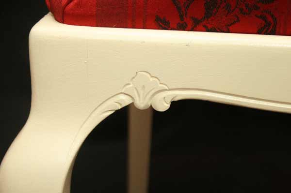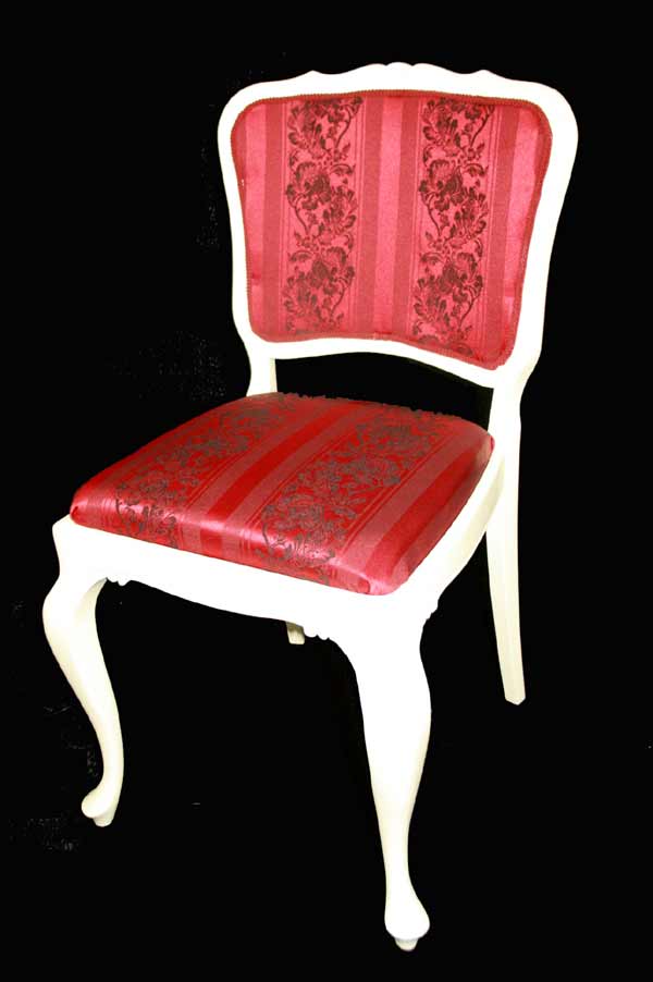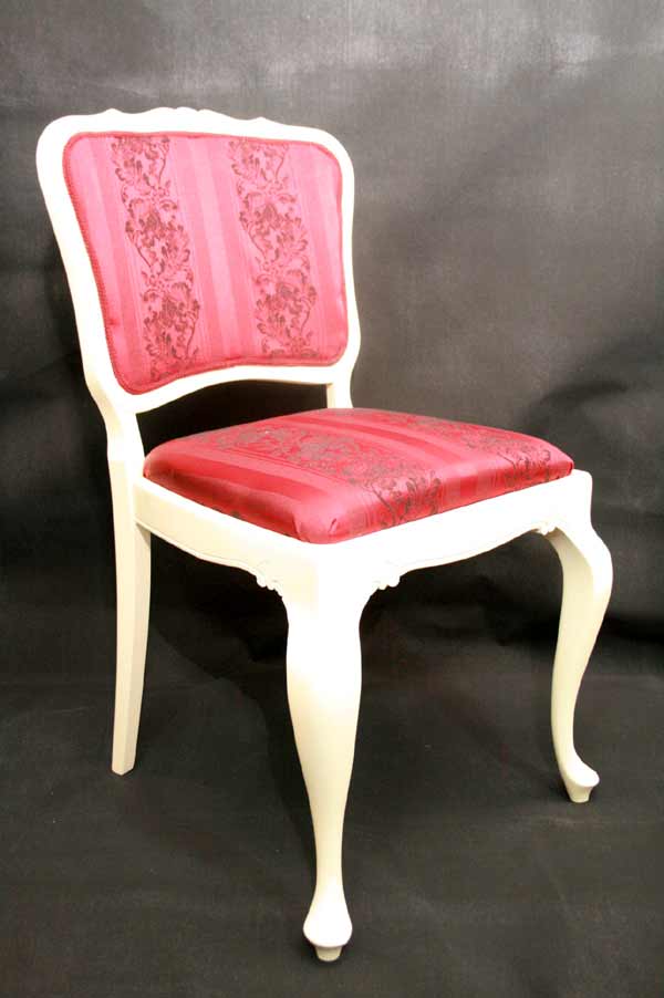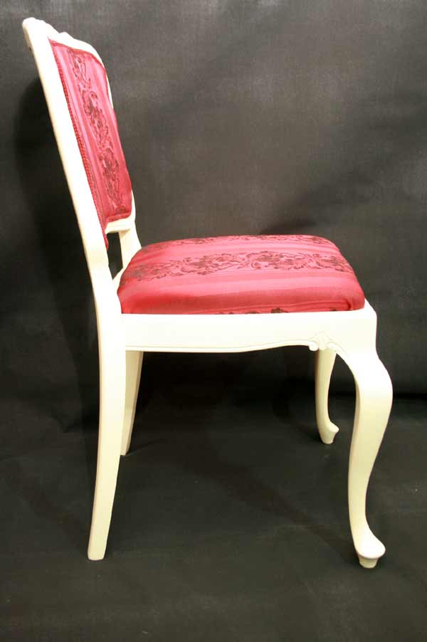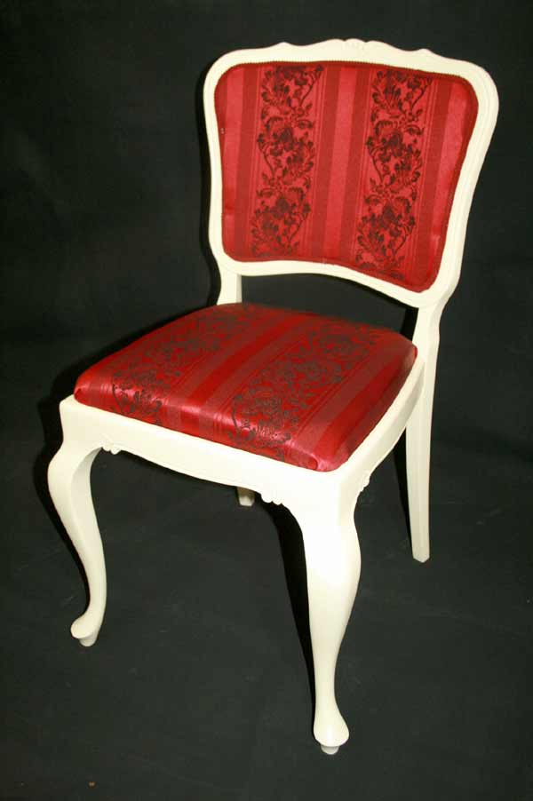 Angeboten wird ein traumhaft schöner Chippendale Stuhl aus massivem Holz. Die vorderen Beine sind sehr schön schwungvoll gestaltet. Die Beine und Rückenlehne sind dezent geschnitzt. Der Stuhl ist in einem schön Weiß gestrichen. Die abnehmbare Sitzfläche sowie die Rückenlehne mit einem edlen Stoff bezogen. Der wunderschöne Stuhl befindet sich in einem guten Zustand. Wir haben weitere 3 gleiche Stühle in unserem Shop!