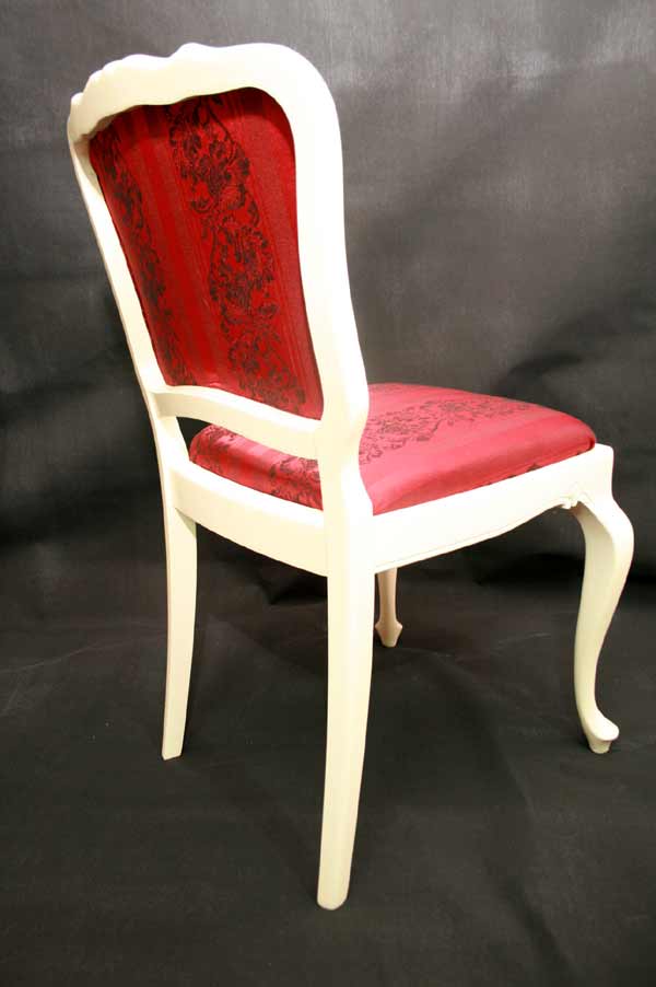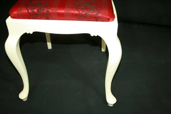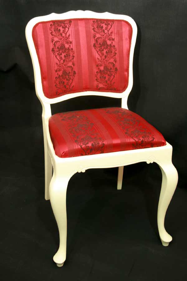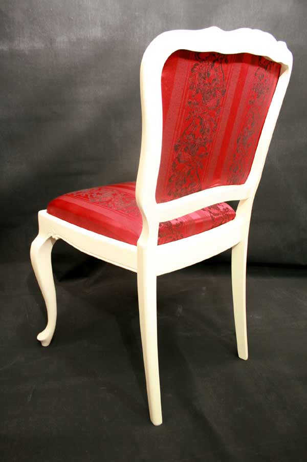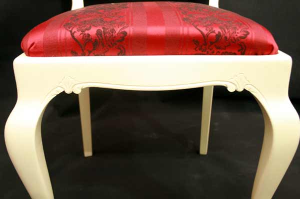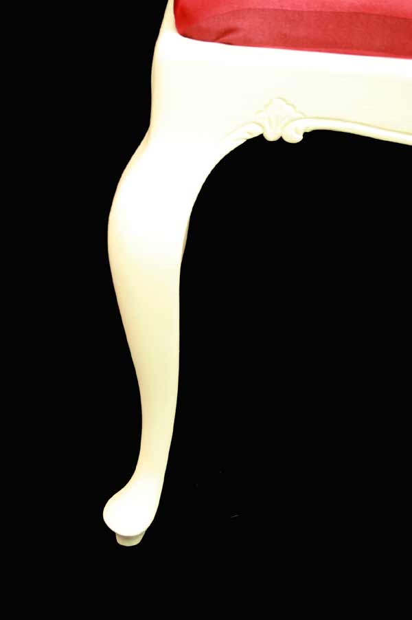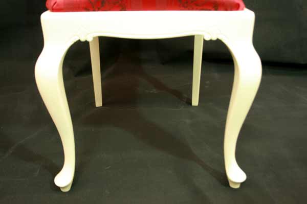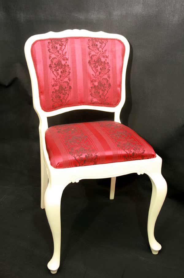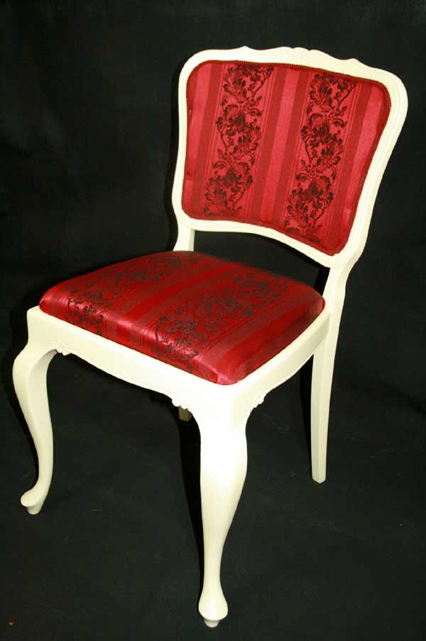 Angeboten wird ein traumhaft schöner Chippendale Stuhl aus massivem Holz. Die vorderen Beine sind sehr schön schwungvoll gestaltet. Die Beine und Rückenlehne sind dezent geschnitzt. Der Stuhl ist in einem schön Weiß gestrichen. Die abnehmbare Sitzfläche sowie die Rückenlehne mit einem edlen Stoff bezogen. Der wunderschöne Stuhl befindet sich in einem guten Zustand. Wir haben weitere 3 gleiche Stühle in unserem Shop!