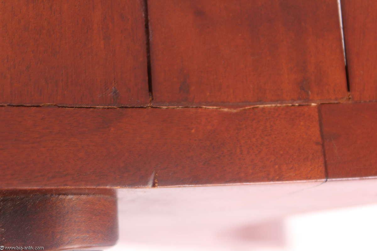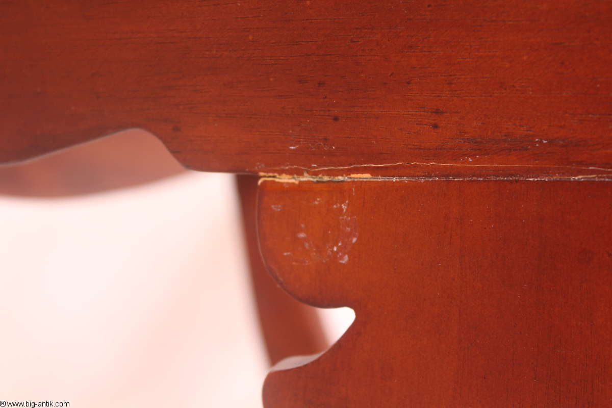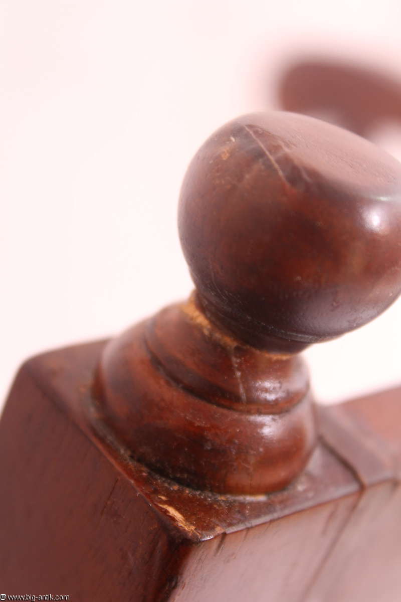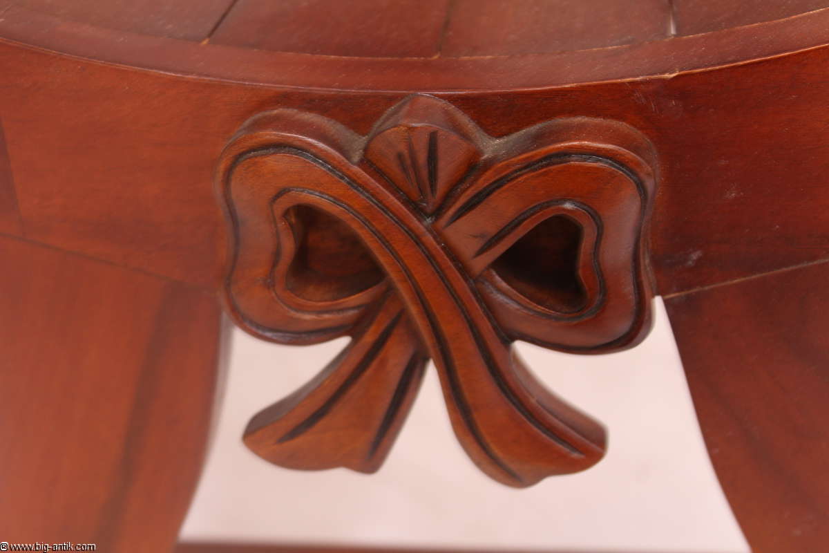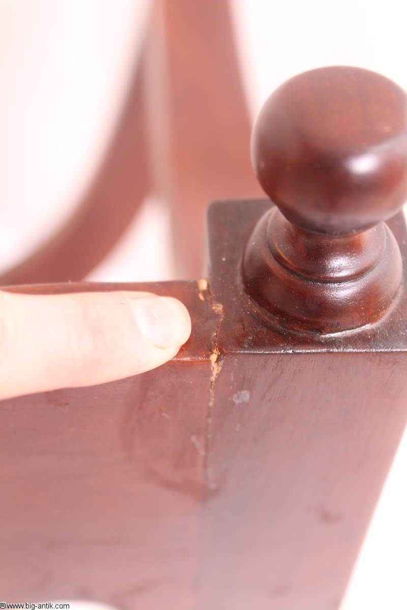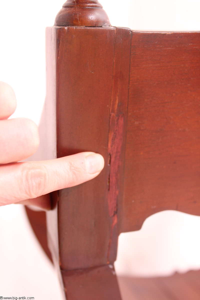 Angeboten wird ein schöner Armlehnenstuhl / Römer Stuhl / Thronstuhl / Scherenstuhl aus massivem Mahagoniholz. Die Rückenlehne ist fantastisch schön geschnitzt und Wappenförmig gestaltet. Die Armlehnen sind leicht geschwungen, die Sitzfläche ist sehr elegant halbrund geformt. Die nach außen gebogenen Beine sind mittels Holzverstrebung miteinander verbunden. Der formschöne Scherenstuhl weist einige Gebrauchsspuren auf u.a wurde der Stuhl an vielen Stellen geleimt, Bruch- bzw. Leimstellen, Kratzer (alles siehe Bilder), dennoch ist der wunderschöne Thronstuhl stabil.