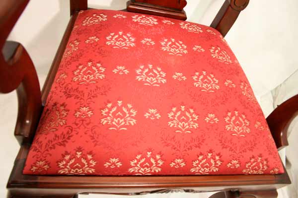 Angeboten wird ein traumhaft schöner Chippendale Armlehnenstuhl / Schreibtischstuhl im antiken englischen “Queen Anne“ Stil aus massivem Mahagoni Holz. Die Rückenlehne besteht in der Mitte aus einem breiten und fantastisch geschnitzten Brett. Die Seiten sind sehr schön halbrund geformt. Die Armlehnen haben eine sehr ausgefallene Form. Die vorderen Beine sind elegant geschwungen. Die Sitzfläche ist mit einem edlen Stoff bezogen. Der schöne Stuhl ist rundherum schön und dezent geschnitzt. Der Armlehnen Stuhl ist neu und befindet sich in einem tadellosen Zustand. Wir haben weitere Stühle dieser Art.