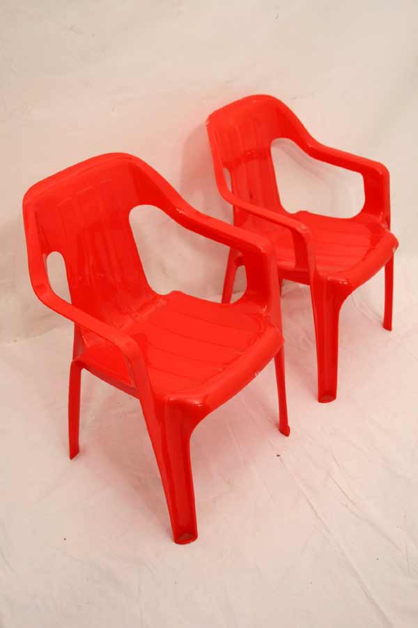 Angeboten werden 2 tolle Kinderstühle / Gartenstühle für Kinder / Stapelstühle. Die schönen Stühle sind aus rotem Kunststoff gegossen. Die Armlehnen und das Gestell sind schön geformt. An den Stühlen sind einige Gebrauchsspuren u.a. Kratzer, Flecken etc. vorhanden (siehe Bilder).