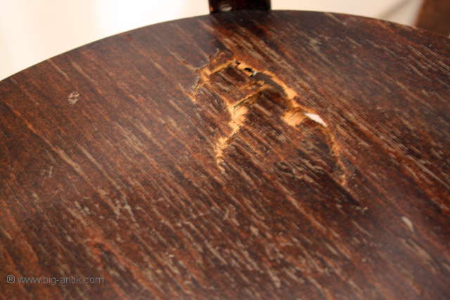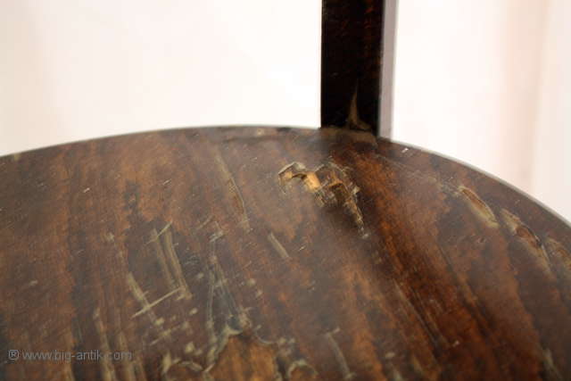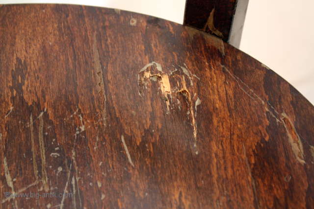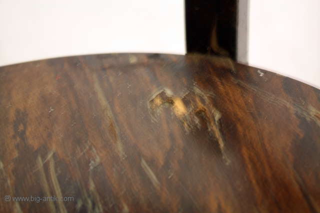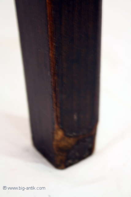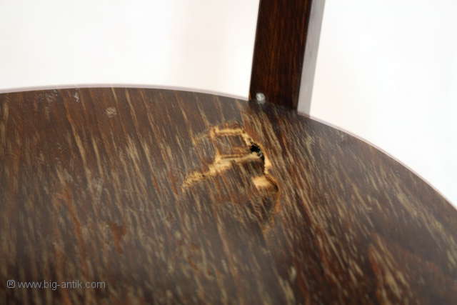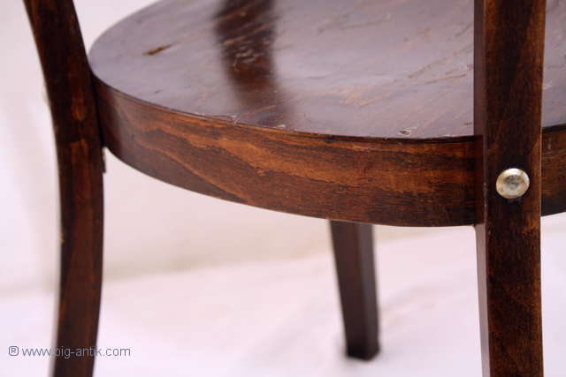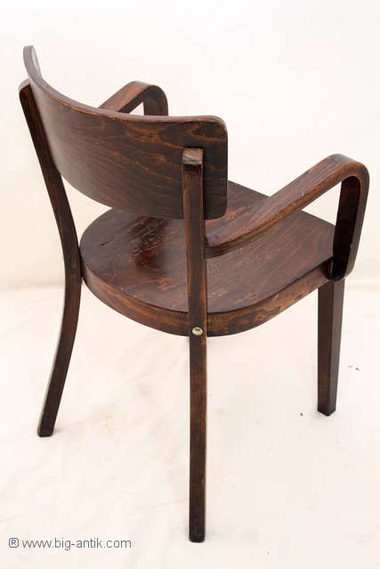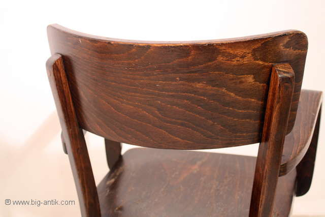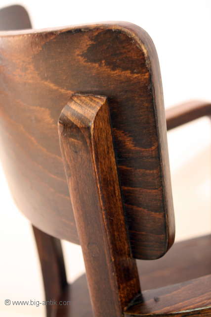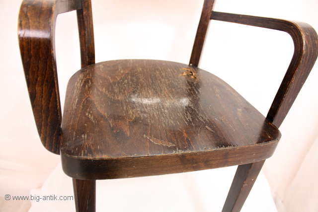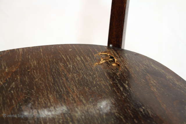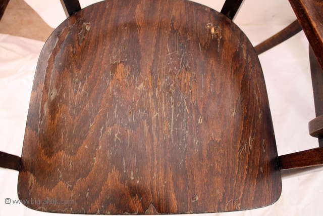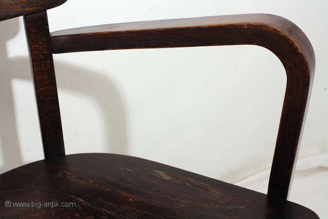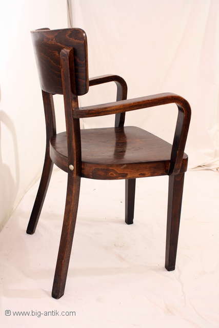 Angeboten wird ein sehr schöner nostalgischer Armlehnensstuhl / Holzstuhl / Bistrostuhl / Kneipenstuhl / Küchenstuhl / Schreibtischstuhl. Die eckigen Sitzfläche und Rückenlehne sind an den Kanten leicht abgerundet. Die Armlehnen sehr schön geformt. Das Holz ist in Palisander gebeizt. Am schönen Stuhl sind viele Gebrauchsspuren vorhanden u.a. Farbe ist an einigen Stellen abgeblättert, die Sitzfläche ist beschädigt und muss geflickt oder ersetzt werden (siehe Bilder) die Beine und Armlehnen sind z.T. wackelig. Der schöne Stuhl wir zum Aufarbeiten angeboten. Wir haben ca. 2 ähnliche Stühle im Angebot.