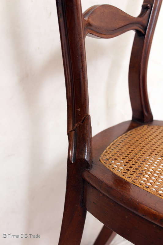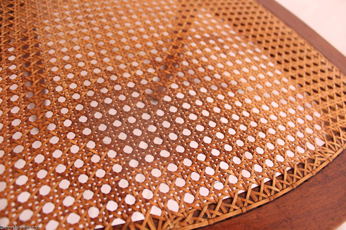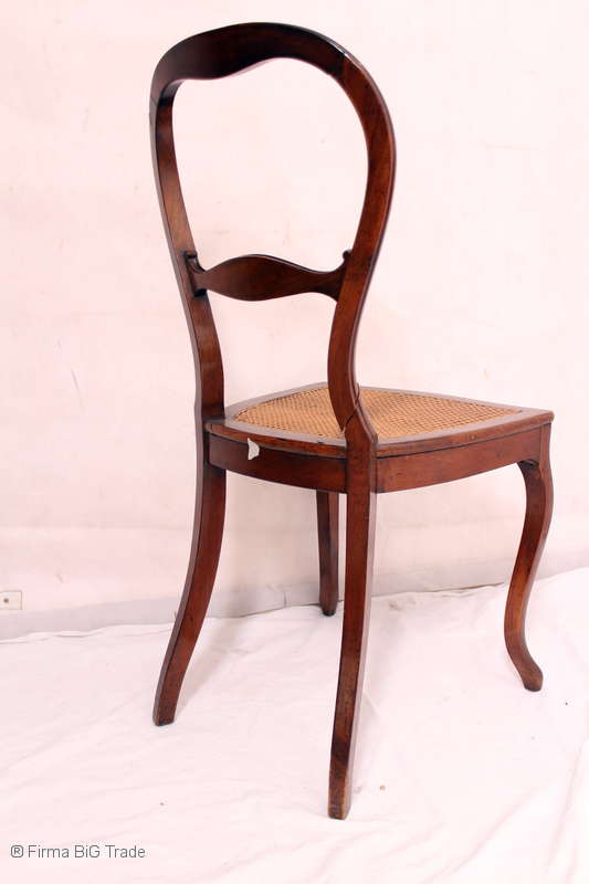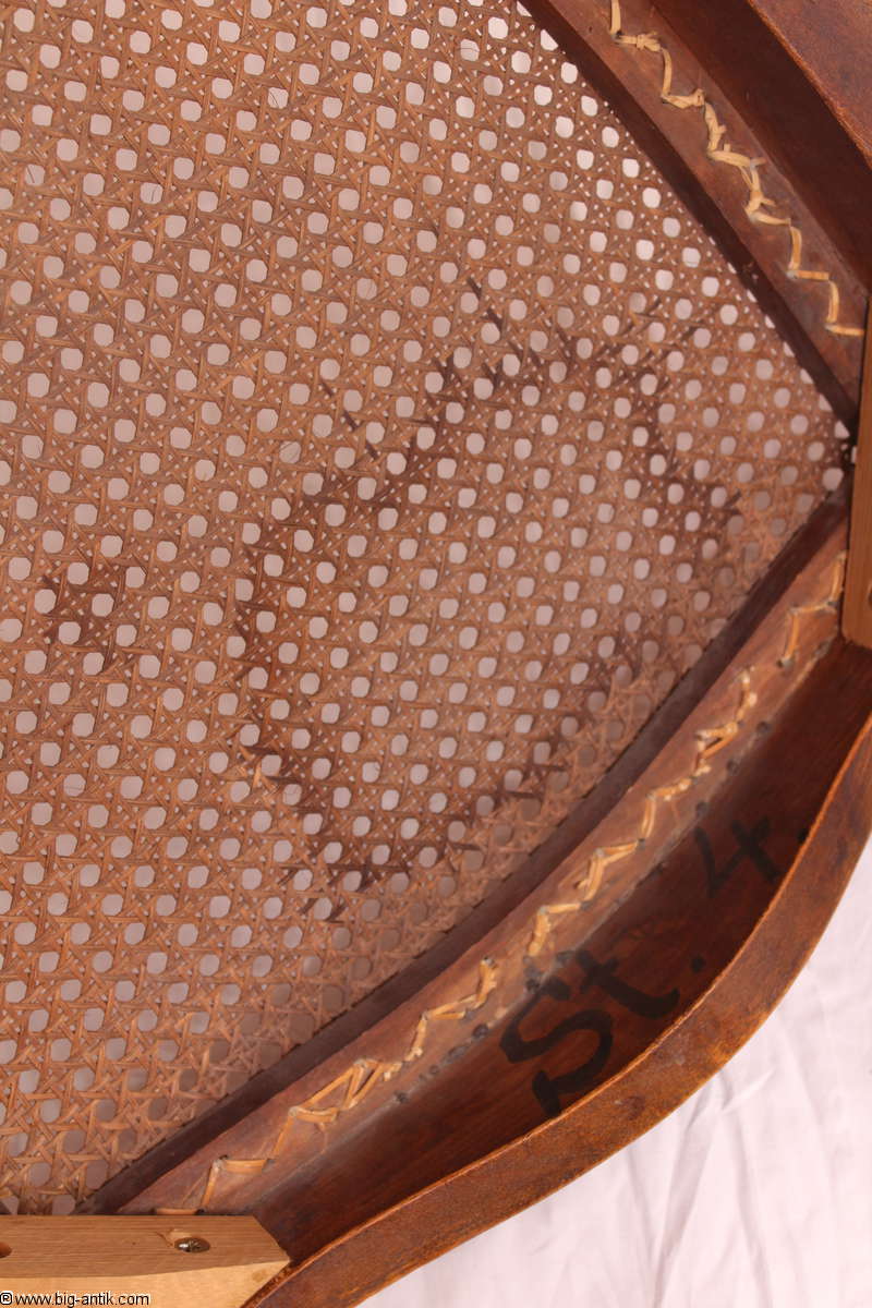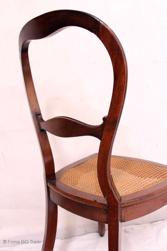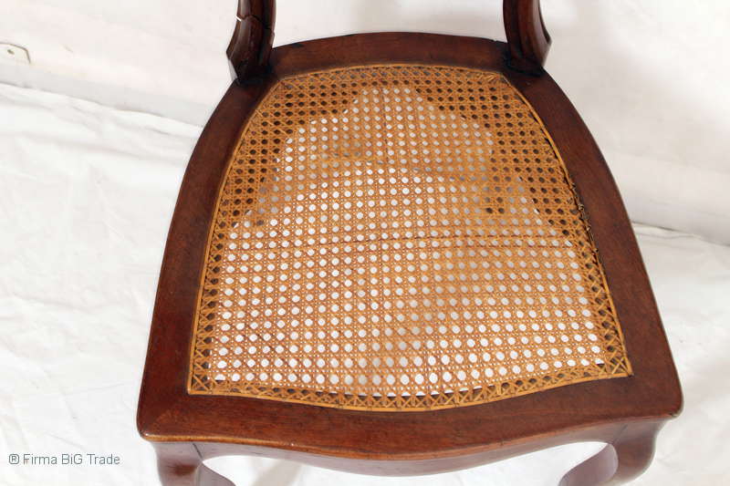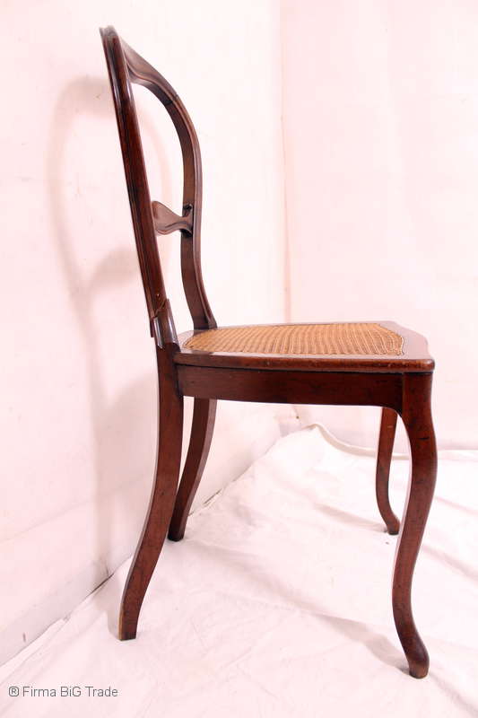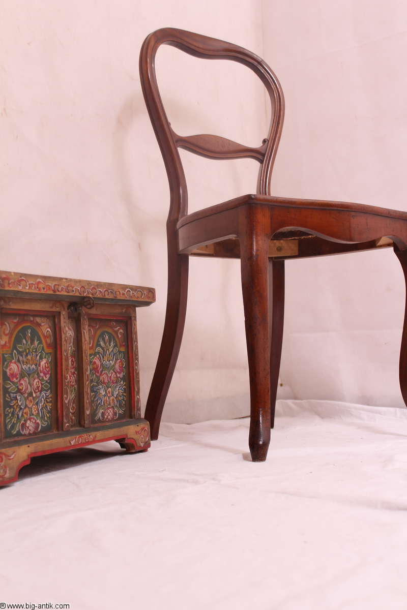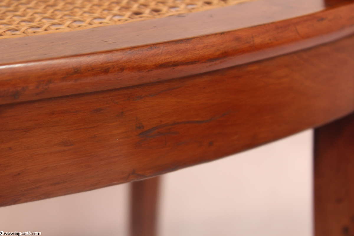 Angeboten werden 4 zauberhafte antike Biedermeier Stühle / Holzstühle / Medaillon Stühle / Salonstühle / Stühle aus massivem Nussbaumholz. Die formschönen Stühle besitzen eine geschwungene Rückenlehne, die Beine sind ebenfalls elegant geschwungen. Die Sitzflächen sind aus Geflecht gespannt. Die antiken Stühle weisen hier und da Gebrauchsspuren auf u.a. leichte Kratzer, Stoßstellen, 1 Stuhl leicht wackelig, kleine Risse im Holz (siehe Bilder), ansonsten befinden sich die wunderschönen Biedermeier Stühle in einem guten gebrauchten Zustand.