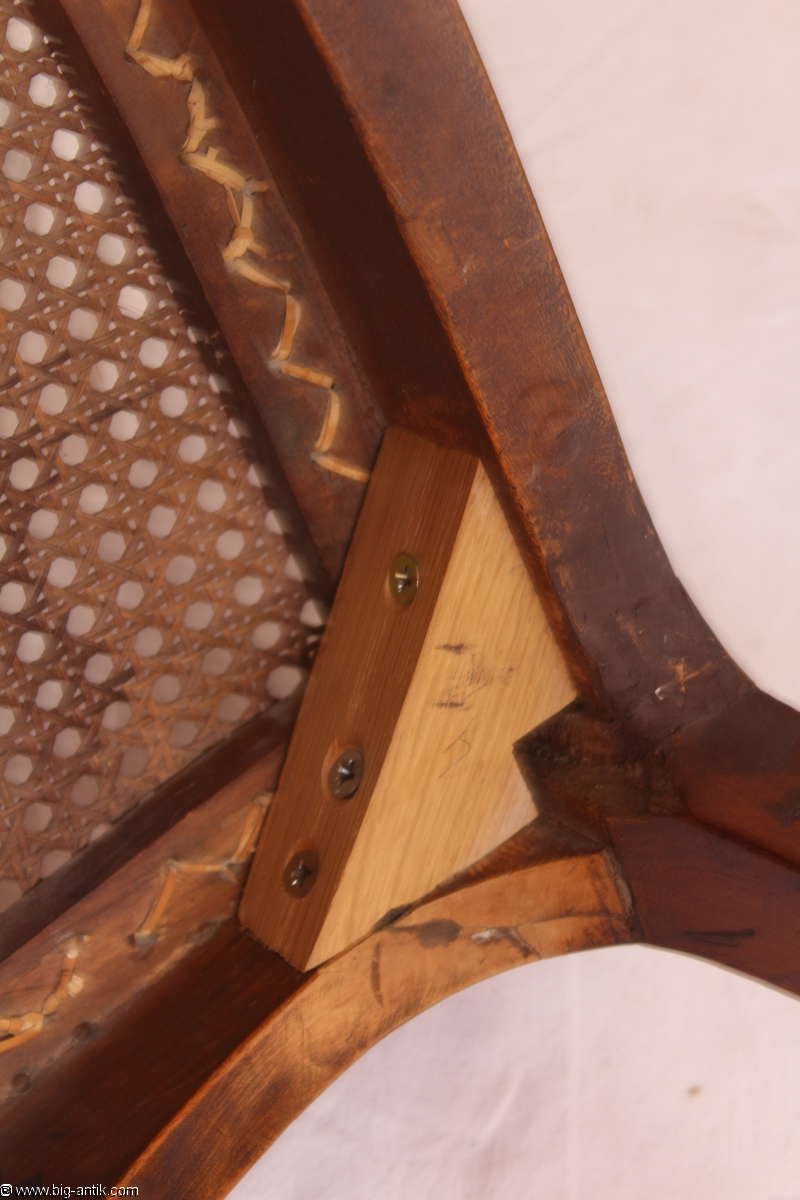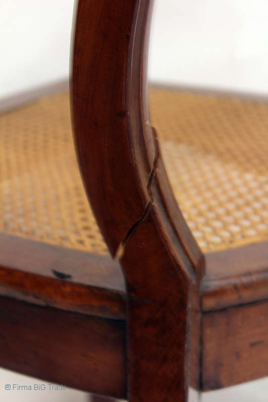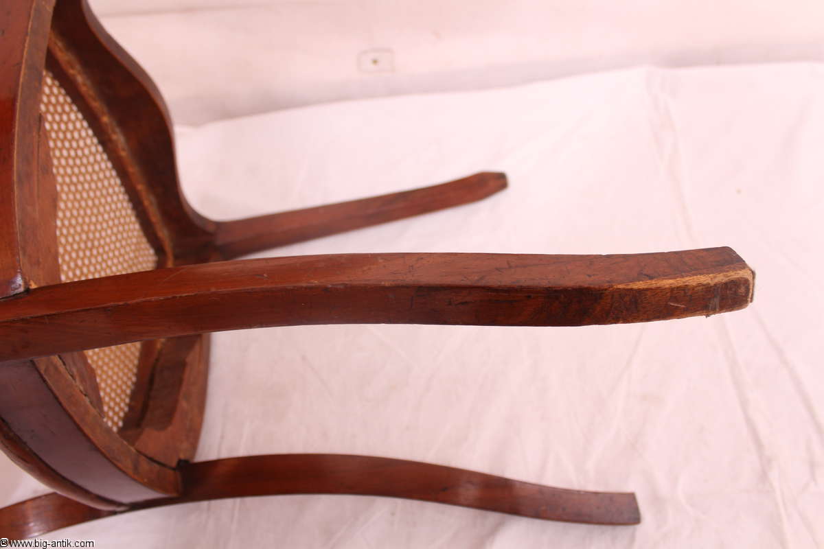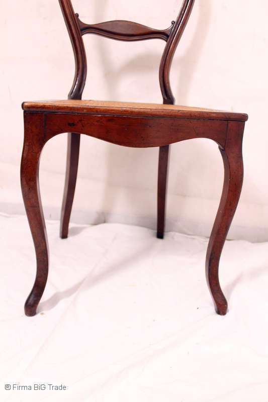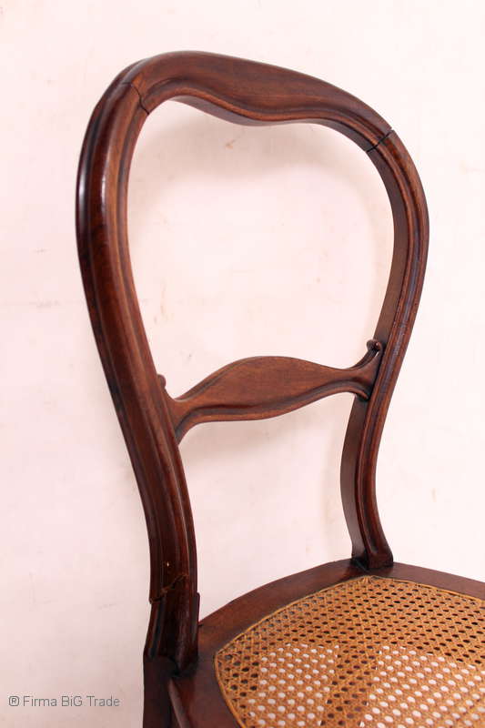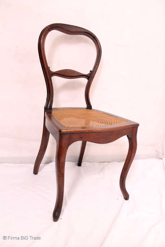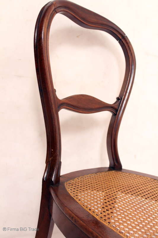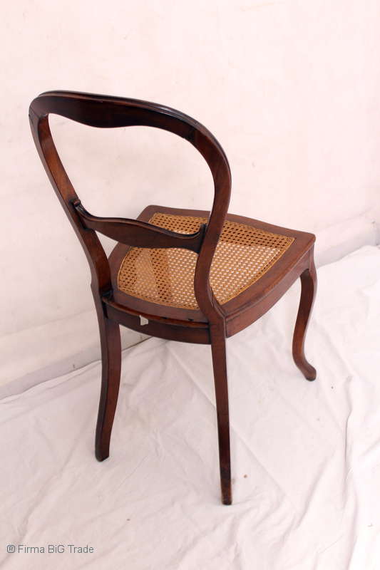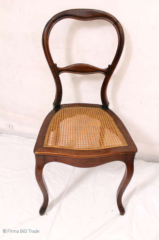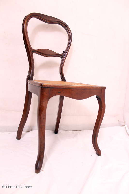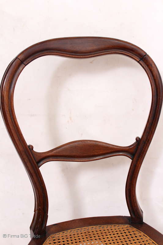 Angeboten werden 4 zauberhafte antike Biedermeier Stühle / Holzstühle / Medaillon Stühle / Salonstühle / Stühle aus massivem Nussbaumholz. Die formschönen Stühle besitzen eine geschwungene Rückenlehne, die Beine sind ebenfalls elegant geschwungen. Die Sitzflächen sind aus Geflecht gespannt. Die antiken Stühle weisen hier und da Gebrauchsspuren auf u.a. leichte Kratzer, Stoßstellen, 1 Stuhl leicht wackelig, kleine Risse im Holz (siehe Bilder), ansonsten befinden sich die wunderschönen Biedermeier Stühle in einem guten gebrauchten Zustand.