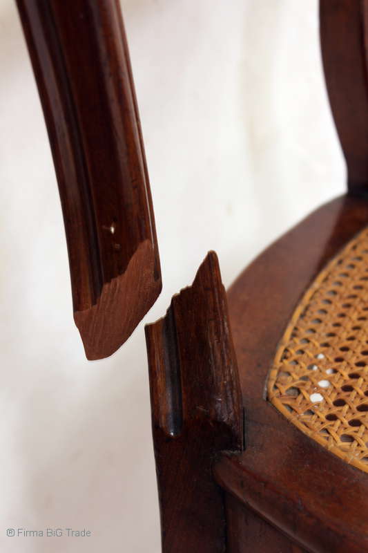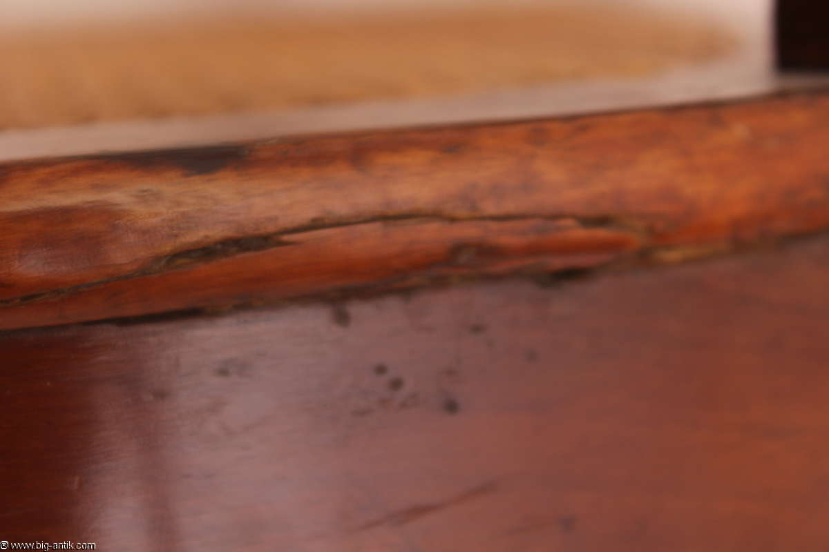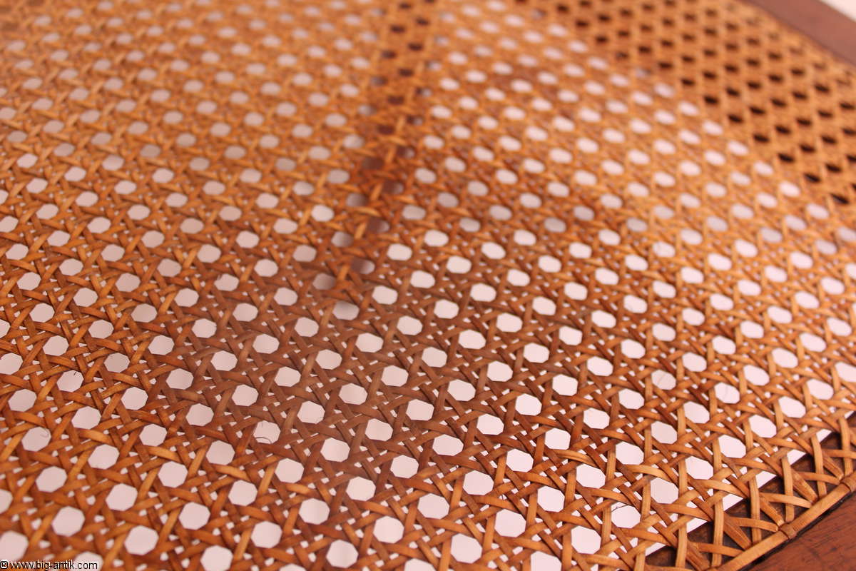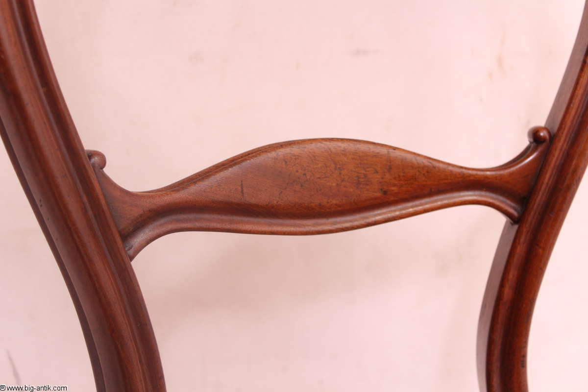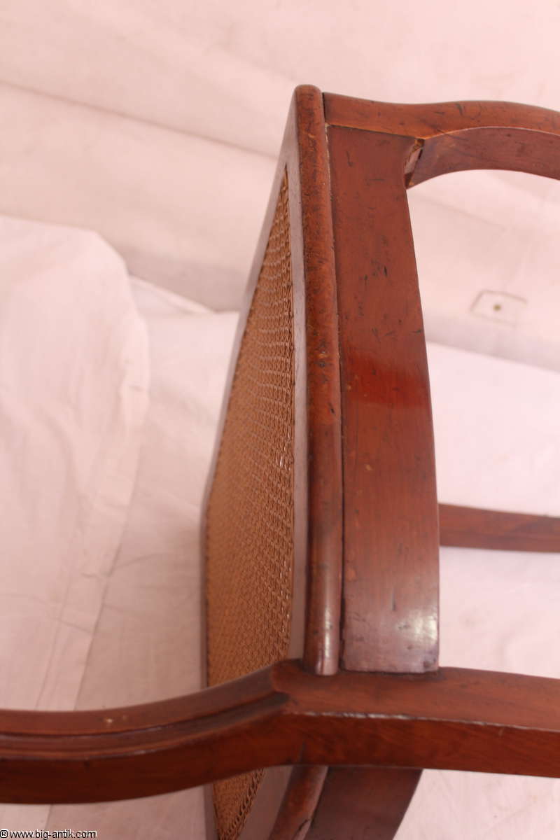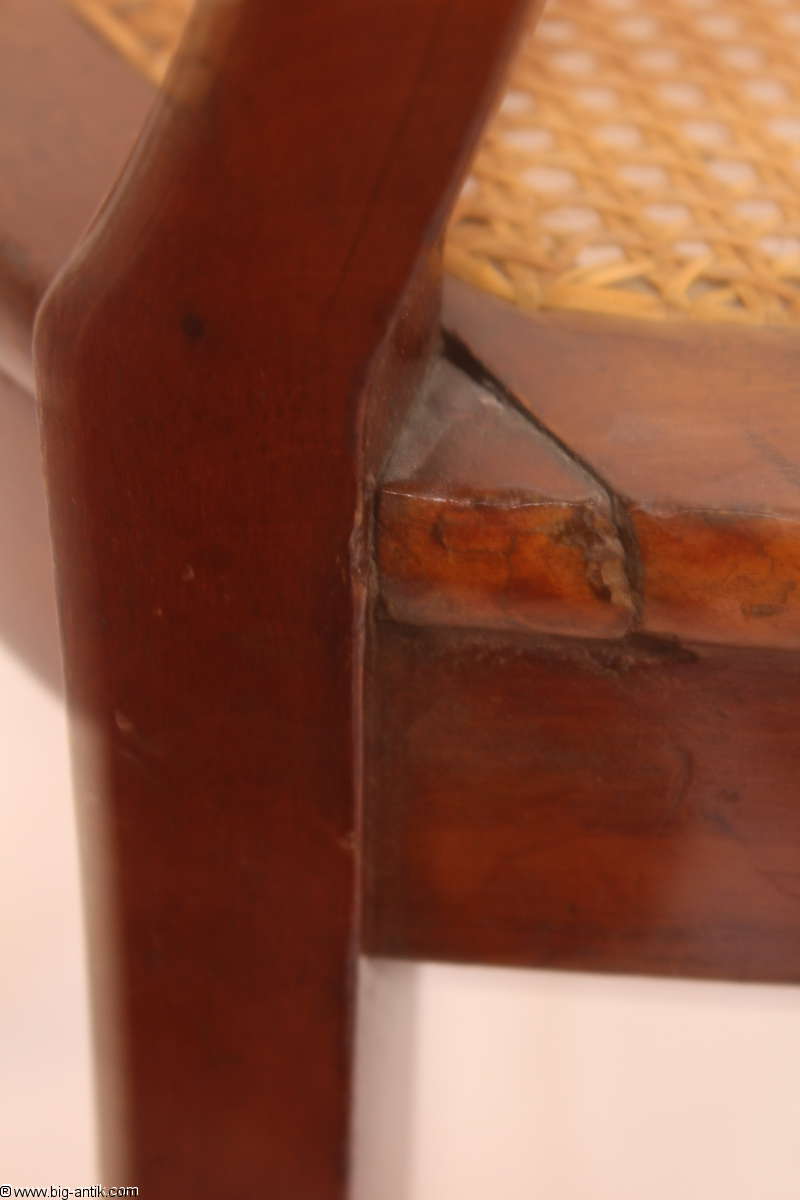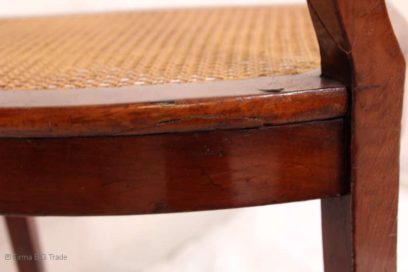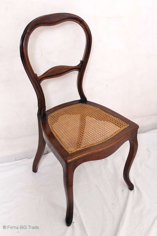 Angeboten werden 4 zauberhafte antike Biedermeier Stühle / Holzstühle / Medaillon Stühle / Salonstühle / Stühle aus massivem Nussbaumholz. Die formschönen Stühle besitzen eine geschwungene Rückenlehne, die Beine sind ebenfalls elegant geschwungen. Die Sitzflächen sind aus Geflecht gespannt. Die antiken Stühle weisen hier und da Gebrauchsspuren auf u.a. leichte Kratzer, Stoßstellen, 1 Stuhl leicht wackelig, kleine Risse im Holz (siehe Bilder), ansonsten befinden sich die wunderschönen Biedermeier Stühle in einem guten gebrauchten Zustand.