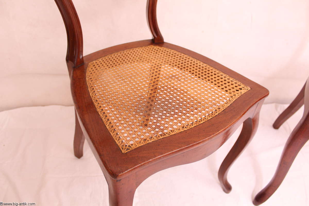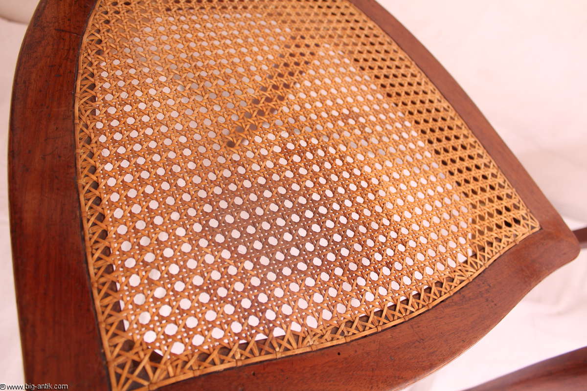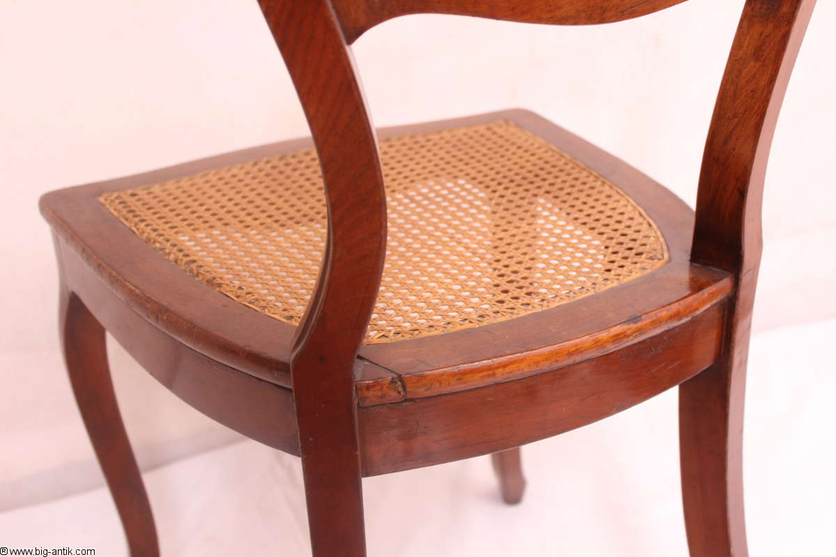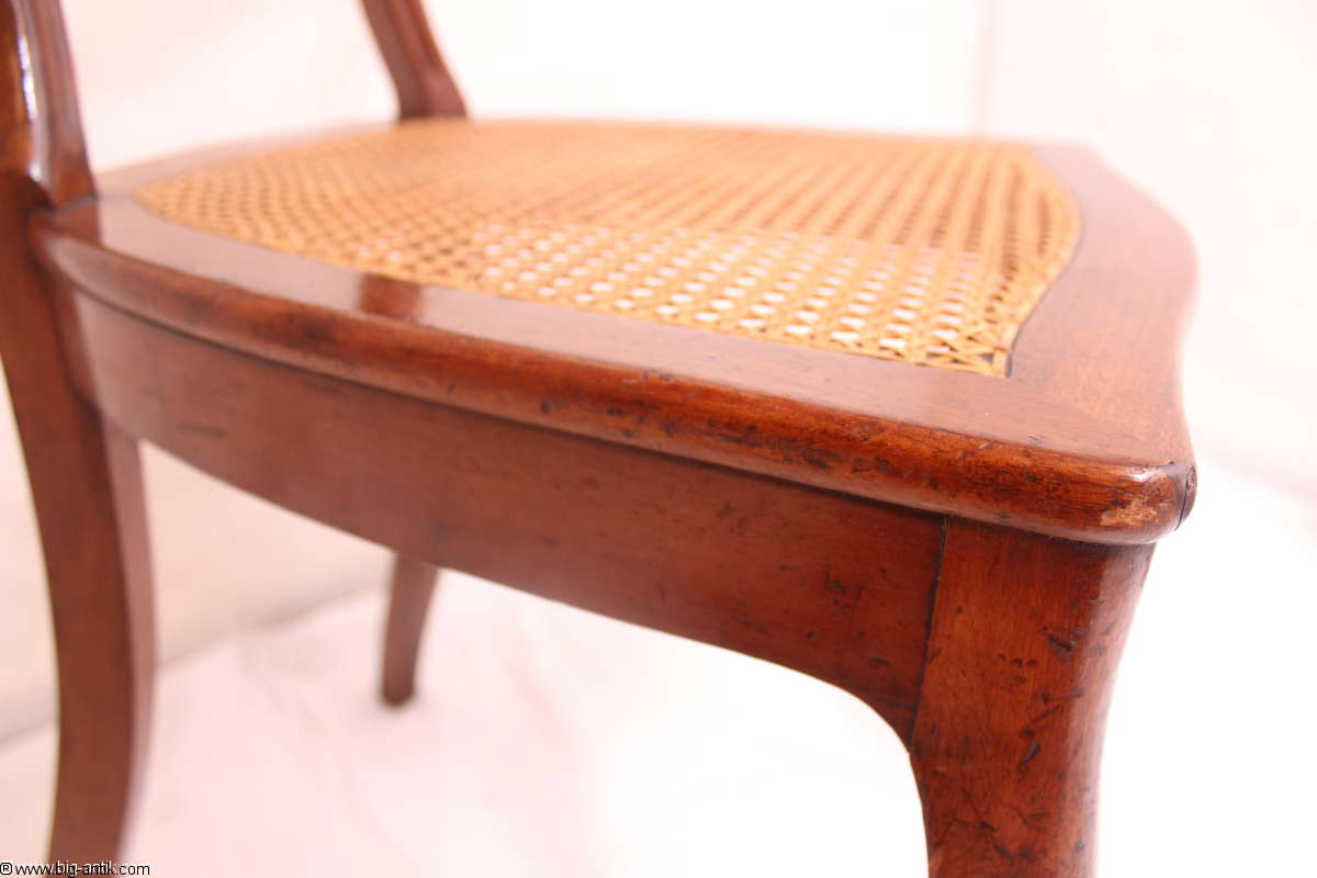 4 zauberhafte antike Biedermeier Stühle / Nußbaum massiv / Sitzgeflecht / geschwungene Beine