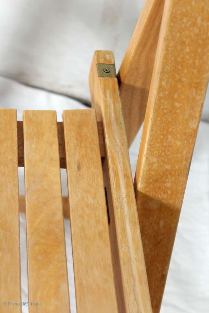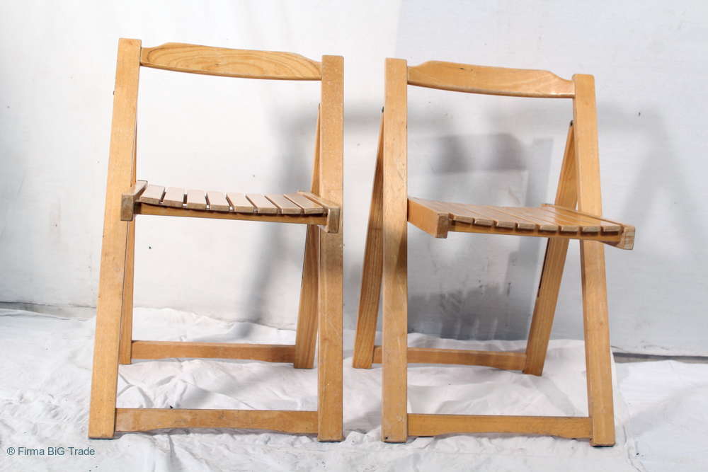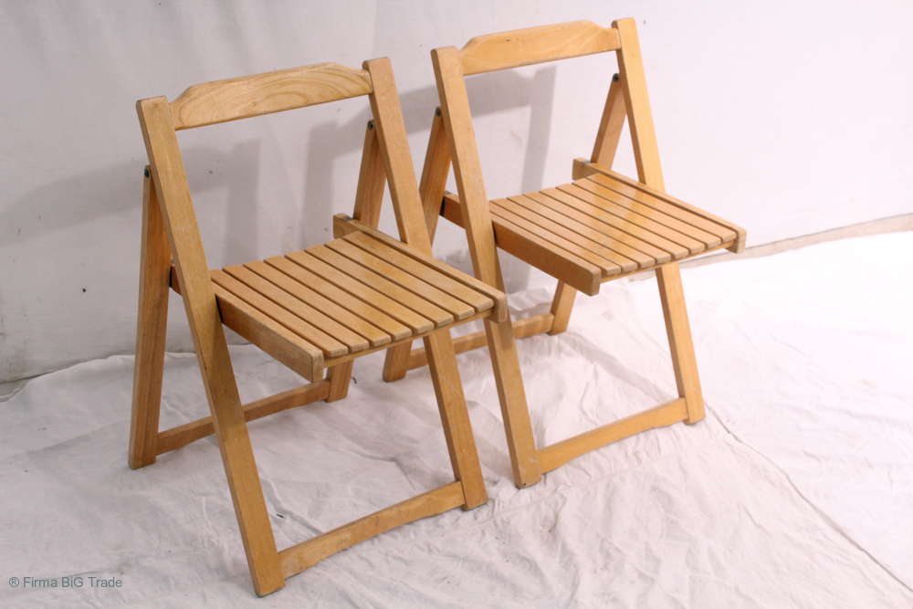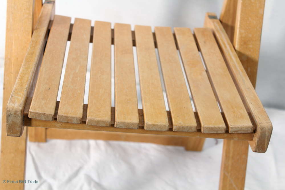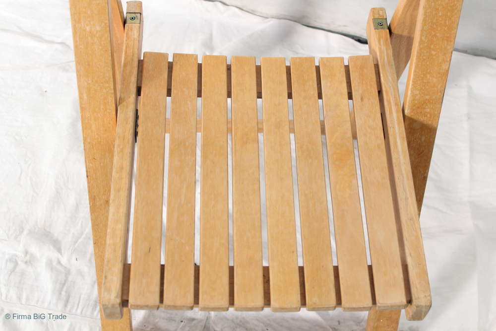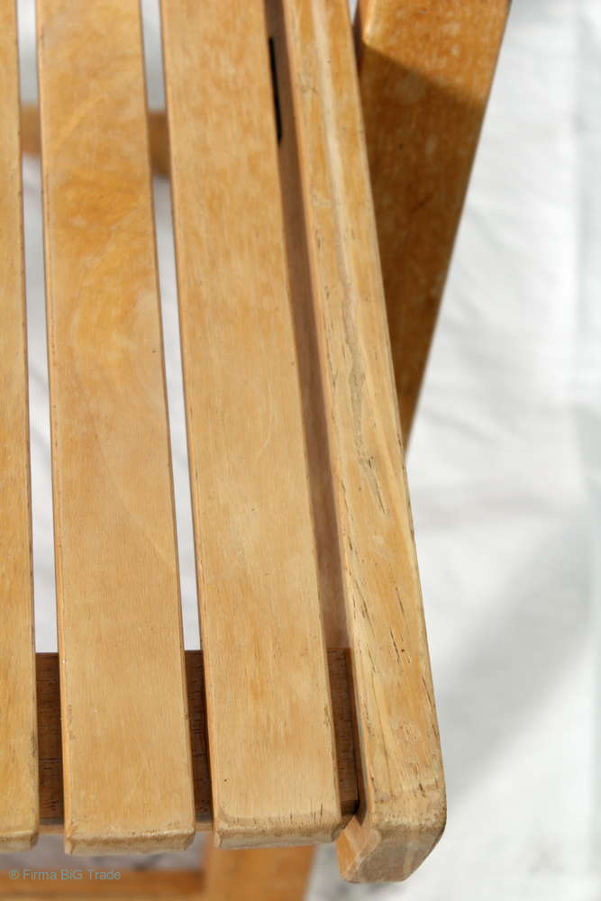 Angeboten werden zwei formschöne Klappstühle / Biergartenstühle / Gartenstühle / Campingstühle / Stühle aus Holz. Rückenlehne und Sitzfläche sind leicht gerundet, die Sitzfläche ist aus Holzleisten zusammengesetzt. Die schönen Gartenstühle aus hellem Holz sind zusammenklappbar. Die tollen Gartenstühle weisen einige Gebrauchsspuren auf u.a. Flecken und Kratzer (siehe Bilder), ansonsten befinden sich die formschönen Klappstühle in einem guten gebrauchten Zustand.