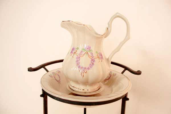 Top! Runder Waschtisch / 6 tlg. Porzellan Wasch Set