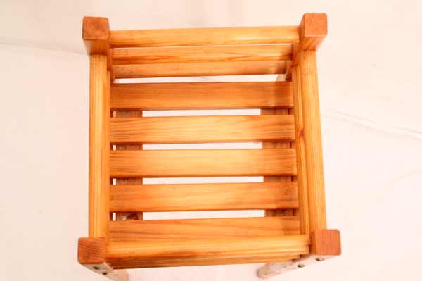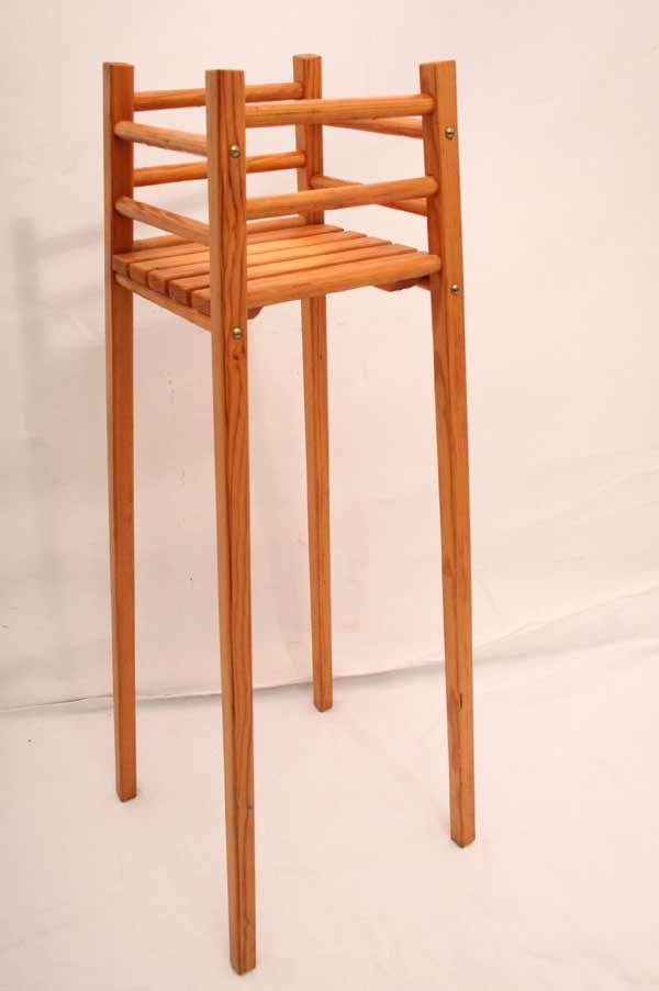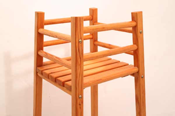 Angeboten wird ein wunderschöner zierlicher Blumenhocker / Blumentisch aus massivem Holz mit einer abnehmbarer Ablageplatte aus Holzlatten.