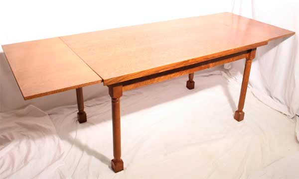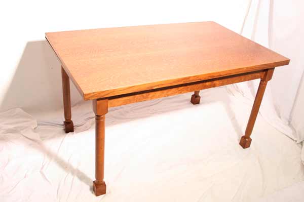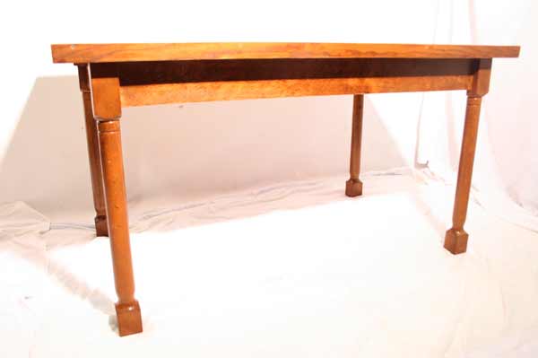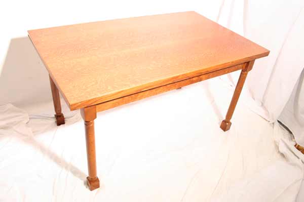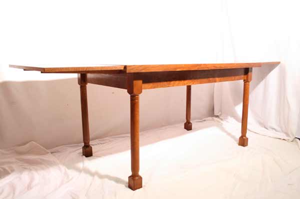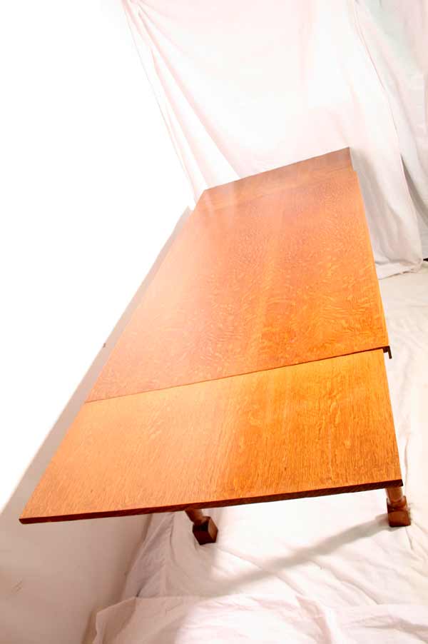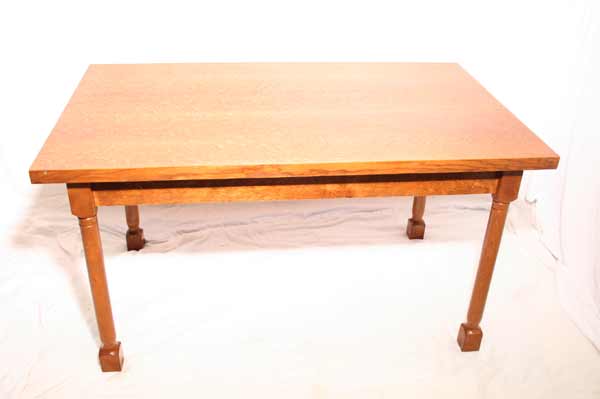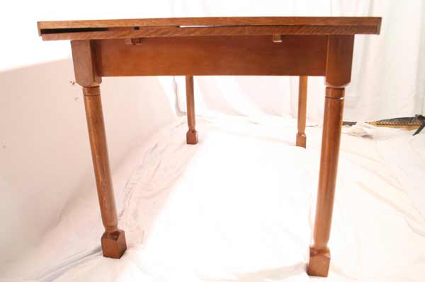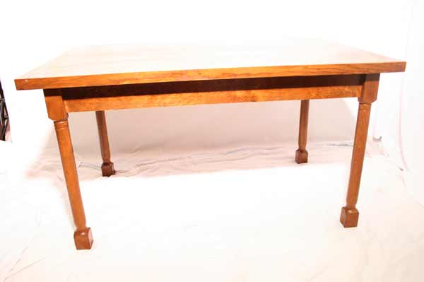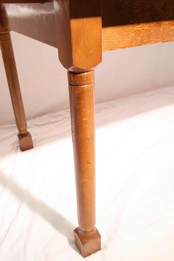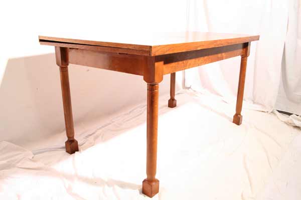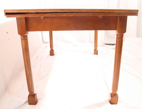 Angeboten wird ein sehr schöner ausziehbarer englischer Esstisch aus den 50er / 60er Jahren. Die Beine sind gedrechselt und die Füße sind Klotzförmig gehalten. Die Ausziehplatten sind vorhanden. Die Hauptplatte ist verzogen und muss ggf. ausgetauscht bzw. erneuert werden. Der schöne nostalgischer Esstisch wird zum Aufarbeiten angeboten.