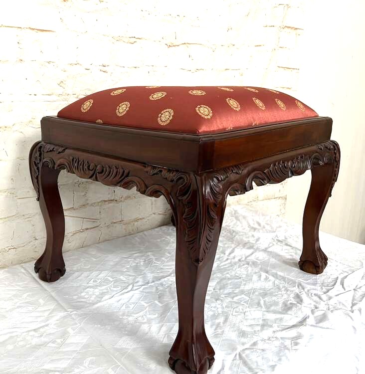 Zauberhafer Chippendale Polsterhocker / Sitzhocker / Bank / Klavierhocker / Edler Stoffbezug / Massiv