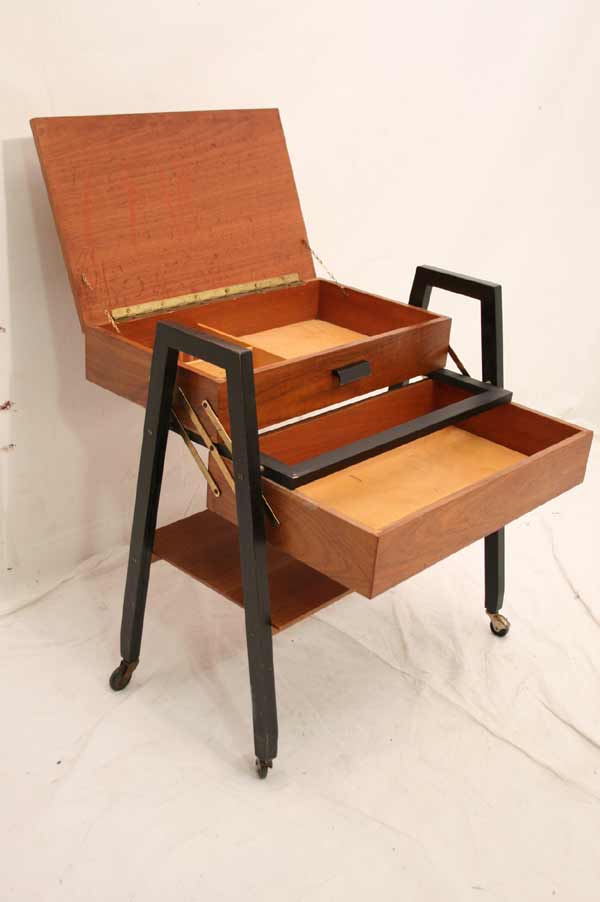 Wunderschöner aufklappbarer 60er Nähtisch / Tolles Innenleben