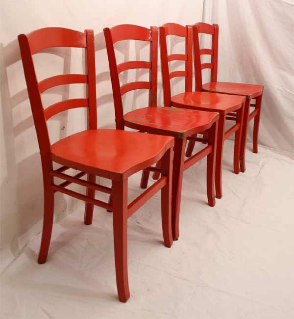 4 wunderschöne antike Brettstühle / Wirtshausstühle / ROT