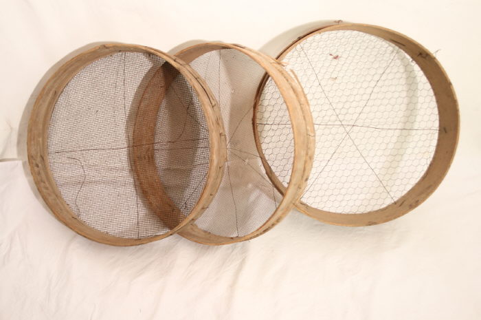 3 antike Siebe / Sandsiebe / Bauwerkzeuge / Deko