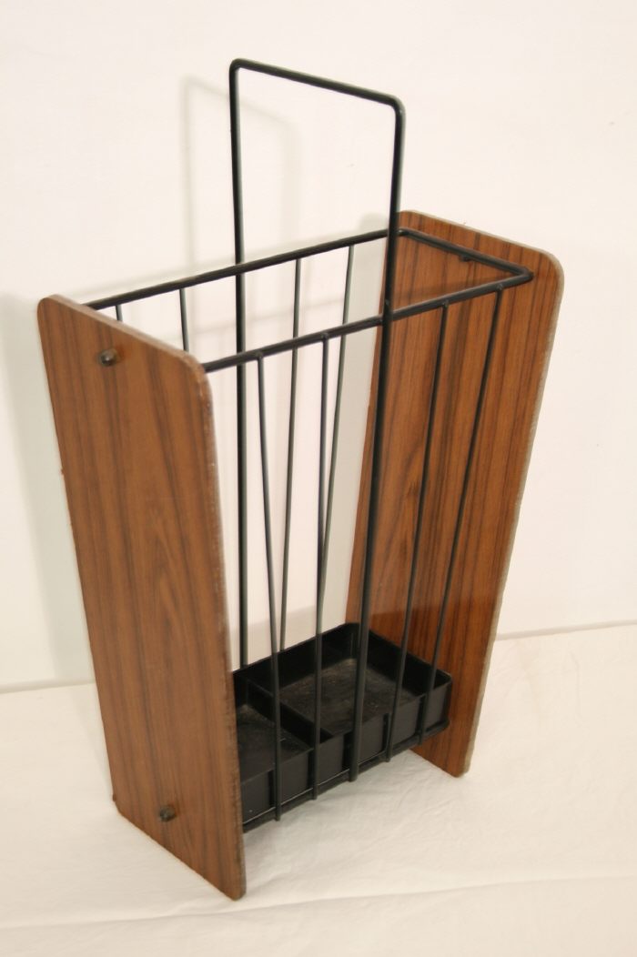 Schöner 60er Jahre Schirmständer / Holz und Metall / Bauhaus Stil