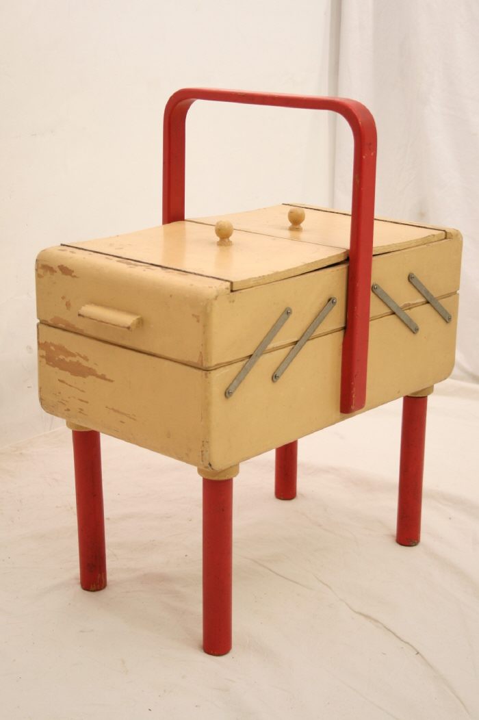 Shabby! Tolle antike Nähkiste / rote Beine / Klappbar