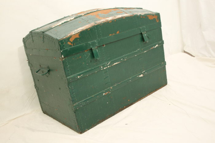 Große antike Gründerzeit Runddeckeltruhe / Kutscher Truhe / Grün