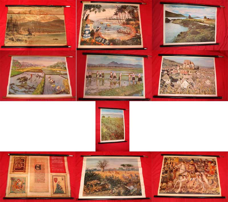 10 große Unterrichtsrollen / Unterrichsbilder / Pergamentrollen / Wandbilder
