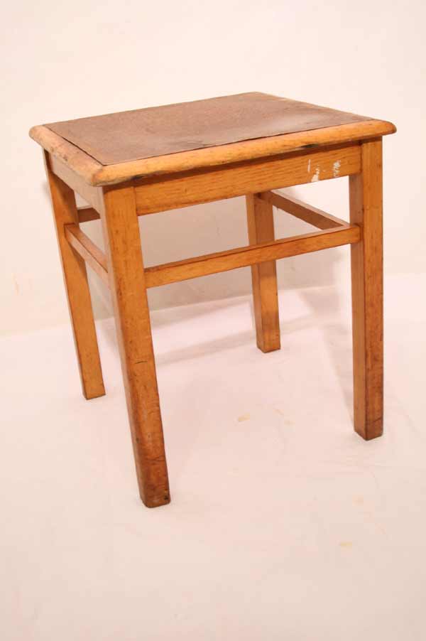 Schöner eckiger 40er Jahre Küchenhocker / Holzhocker