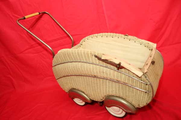 Wunderschöner Antiker Puppenwagen / Geflecht / Radkappen