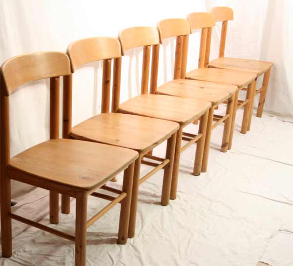 6 wunderschöne Weichholzstühle / Küchenstühle / eckig